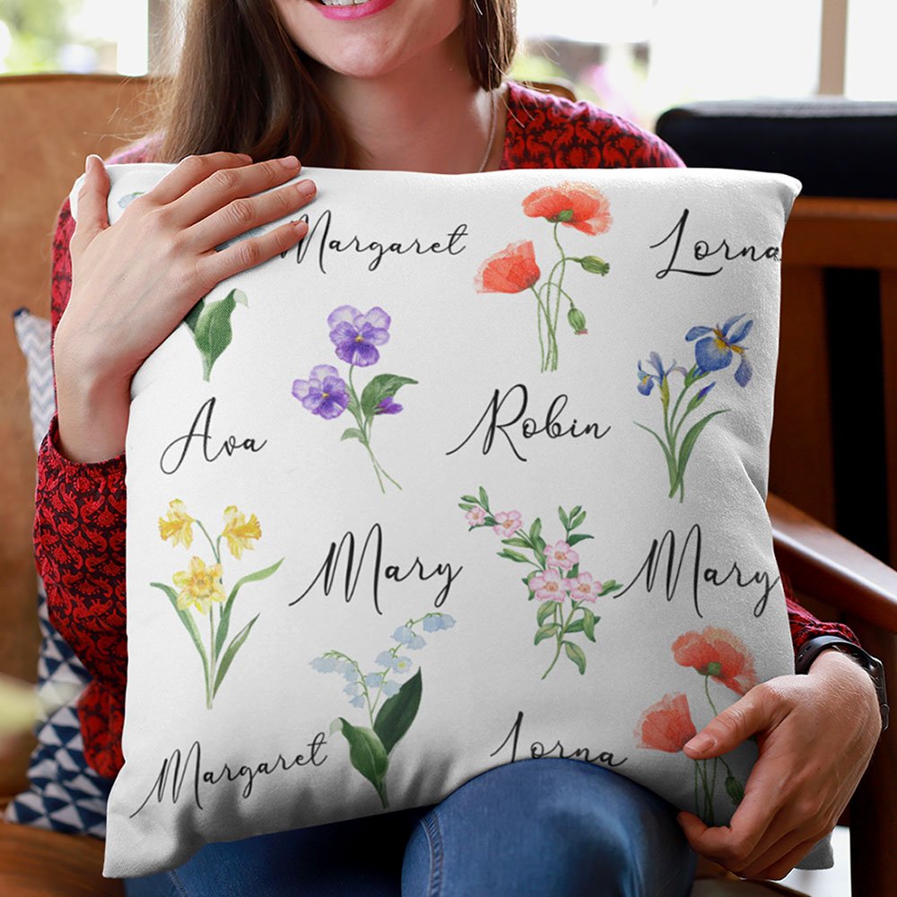 24 kinds of birth flowers to choose from, and you can customize the names of family members, which represent that you are a united family. Throw pillows can be as chairs sofa cushions, car cushions, and interior decorations. Use it anywhere - bedroom, guest room, RV trip, vacation home.