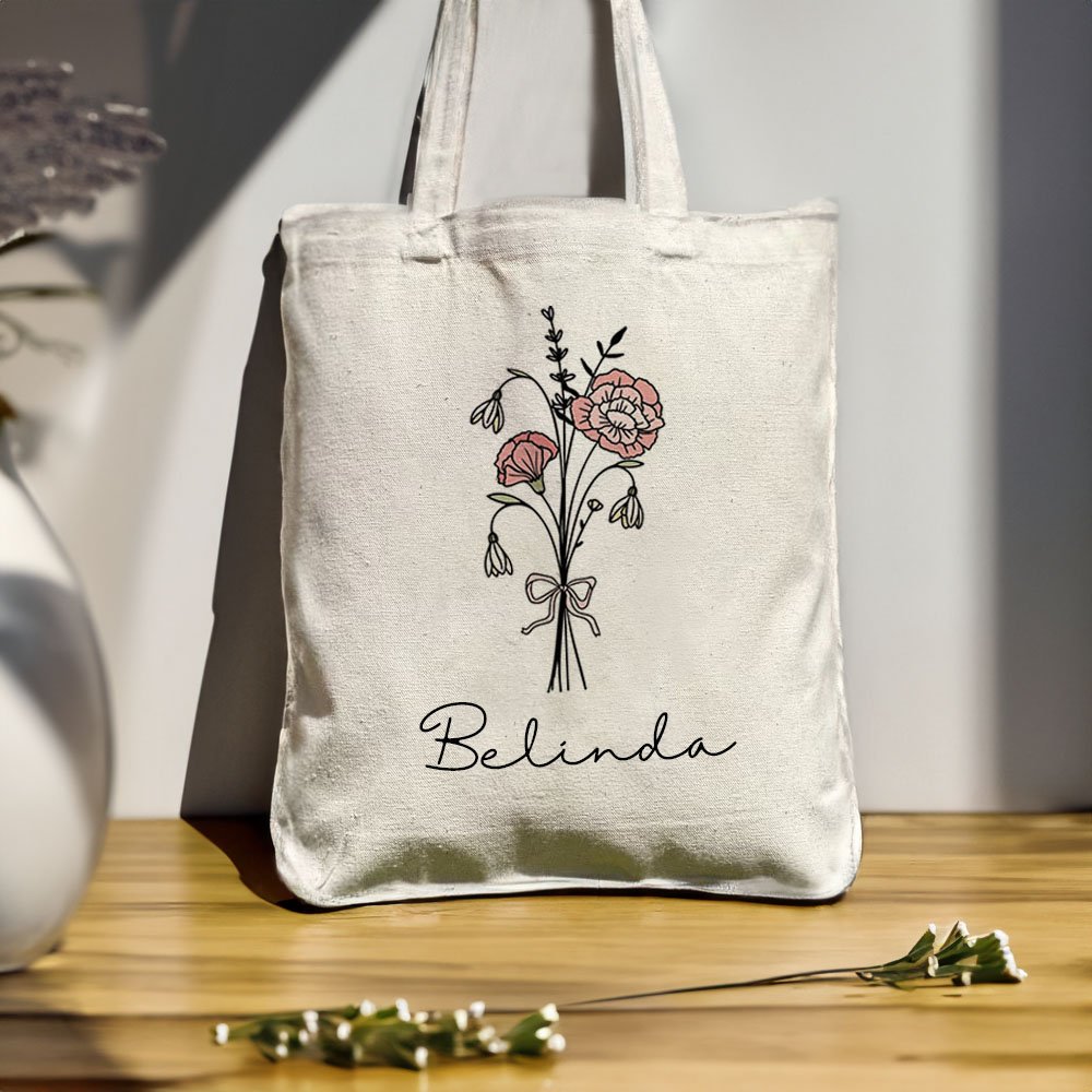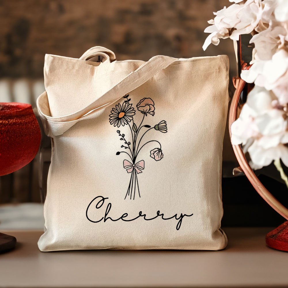 The bag is printed with a birthday flower pattern with a bow. Your name can be customized below the pattern, adding your unique mark to the bag.