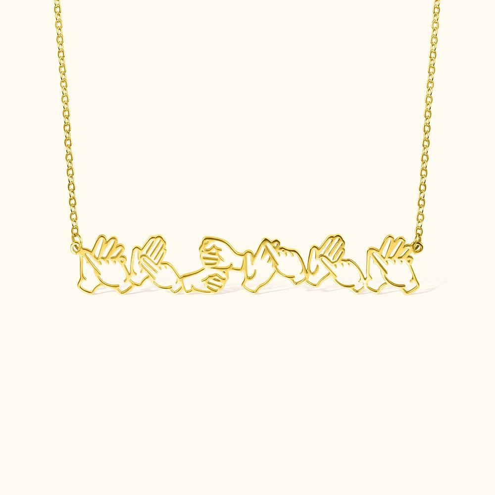 This exquisite hollow necklace features Personalised British Sign Language (BSL) gestures that spell out an individual's name or a specific word. It beautifully represents the connection to personal identity, making it a meaningful piece of jewelry.
