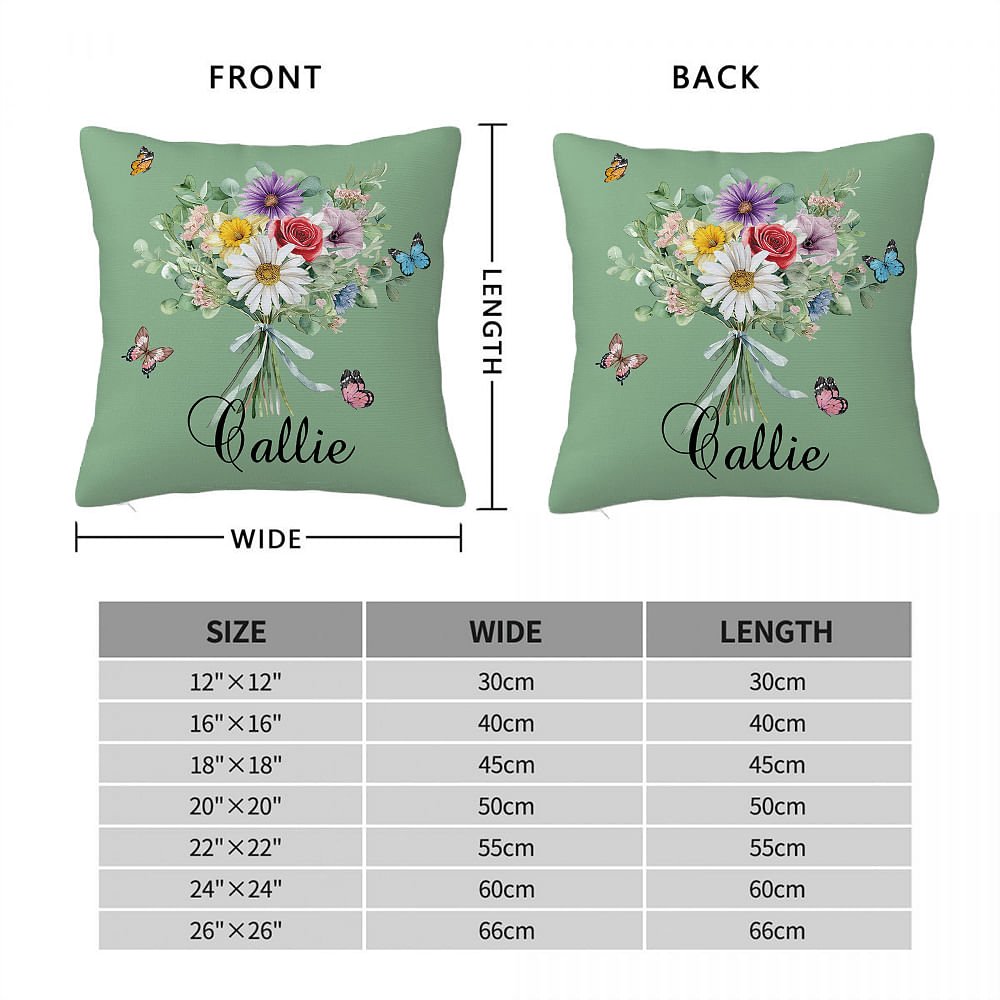 Upgrade your home style with our soft throw pillow cover! This pillow cover features a colourful butterfly design intertwined with beautiful birthday bouquets, and you can choose 1-8 bouquets depending on the family members, adding a touch of elegance and warmth to your home decor. You can also add your name to make it an extraordinary keepsake.