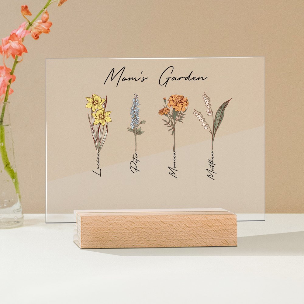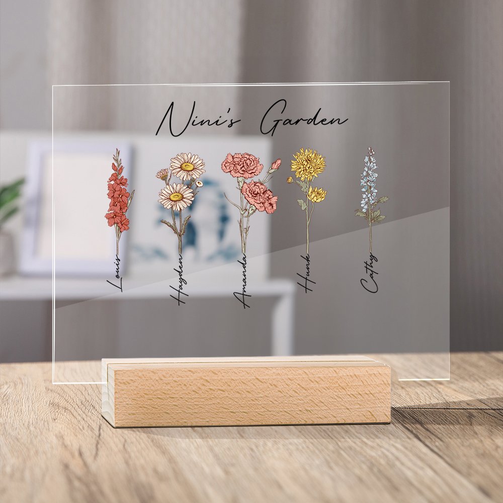 Personalized 1-20 Birth Flowers Acrylic Plaque with Name and Base Room Decoration Mother's Day Birthday Gift for Grandma Mom
