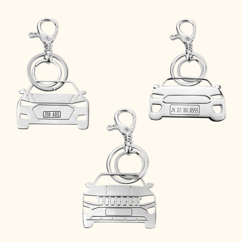 This car keychain is one of the best car accessories for your ride. Made with stainless steel grade 304, this finely made car-shaped number plate keychain is a work of art, that helps to increase the durability and shine of the number plate keychain. The keychain is specifically customized to the logo for the particular car to accentuate the car's design. The round edges of the car keychain are thoughtfully made to be easy on the pockets. The car design is attached to a high-quality stainless steel key ring to complete the look of the keychain premium.