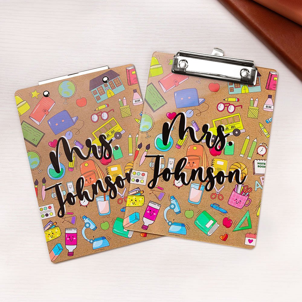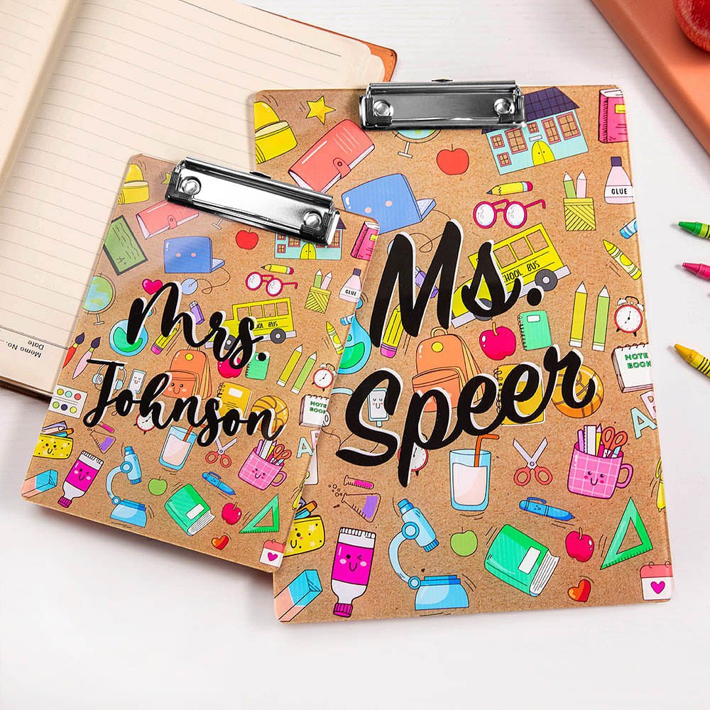 This Personalized clipboard combines cute educational elements, such as a school bag, ruler, pencil, etc., with a customizable name, making it unique and adding a touch of colour to daily teaching.