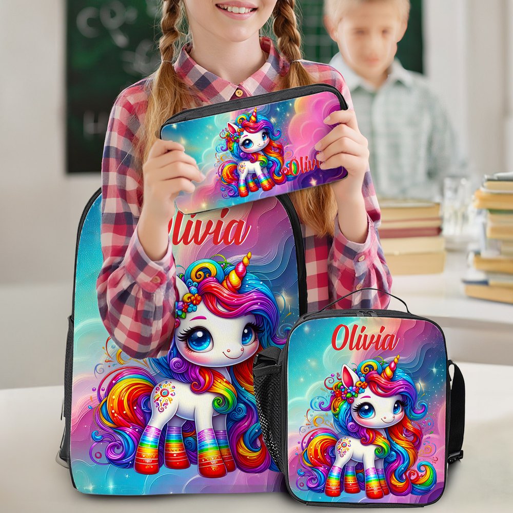 The custom cartoon-themed backpack, lunch bag, and pencil case set is the perfect gift for boys and girls. Designed to reflect their unique personality, it brings joy and creativity to their school routine. Whether it's a birthday surprise, back-to-school essential, or everyday companion, this set adds a touch of personal charm and care to their day.