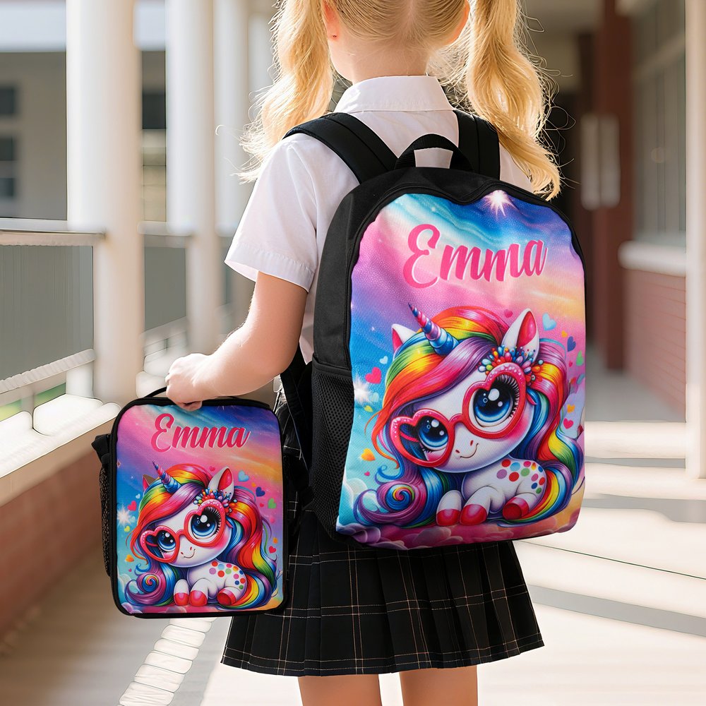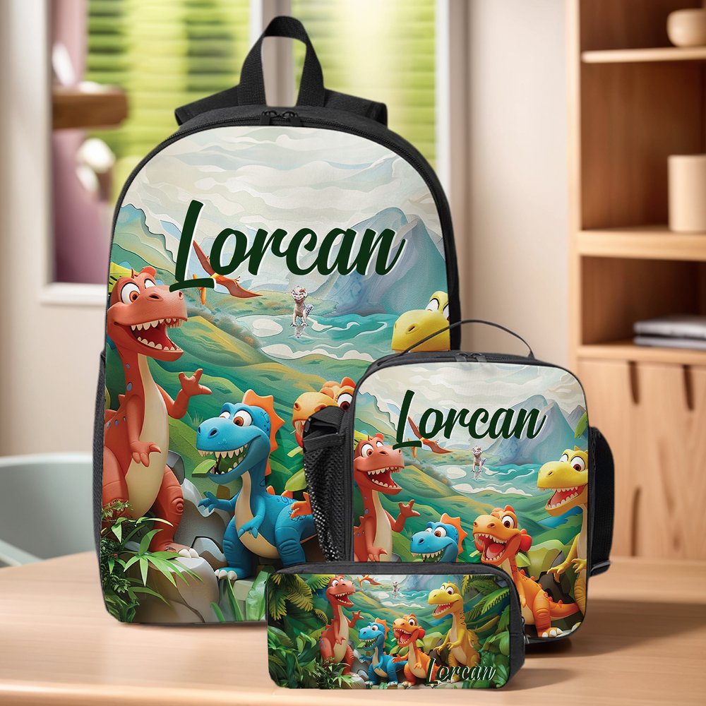 This three-piece customized school bag, lunch bag, and pencil case is mainly designed with cartoon animals. Not only does it provide 14 unique patterns to choose from, from cute fantasy unicorn to cool dinosaur designs, it can meet different personalities and preferences. You can print your own name on your school bag, pencil case or meal bag to make it a unique personal item.