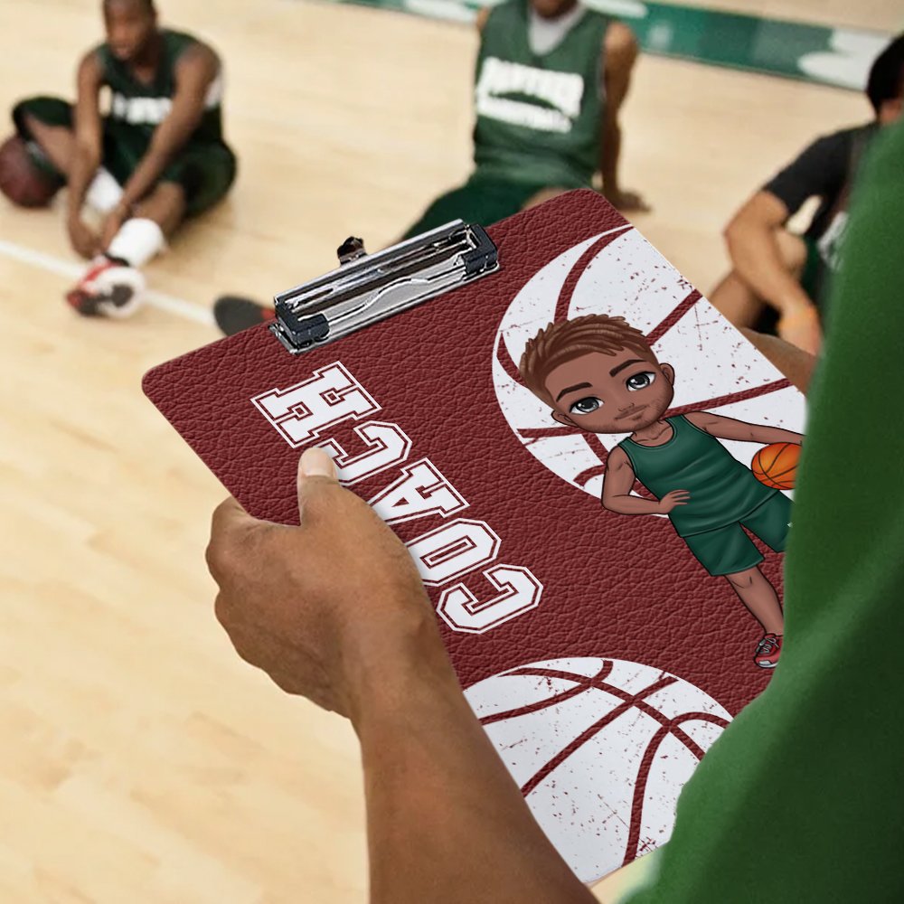 This clipboard features a faux leather texture design, combining a cartoon character based on your image and a Personalized name to convey a sense of innocence and energy. We provide a variety of ball patterns, such as basketball, beach ball, handball, red bowling ball, water polo ball, soccer, volleyball, football, and rugby for you to choose from based on your preferences. It also can be customized with a title and team number, reflecting your unique personality.