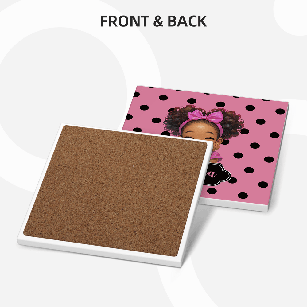 Personalized Cartoon Black Girl 11 oz 15 oz Ceramic Coffee Mug with Name and Coaster Daily Use Birthday Gift for Girls