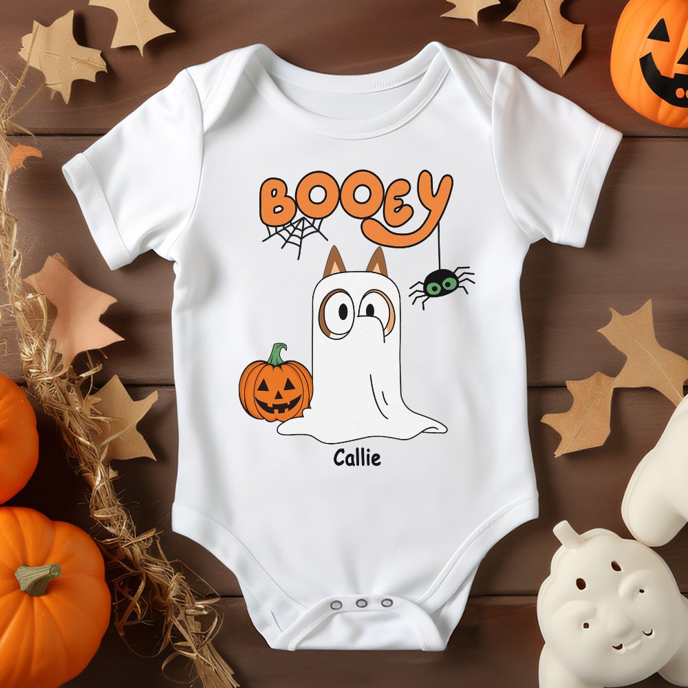 This baby bodysuit cleverly incorporates Halloween elements with cute and funny ghost images, pumpkins, and spider webs, adding more joy to your baby's holiday look. Depending on the number of family members, you can choose 1 to 6 ghost images and customize the name of each family member for each ghost, making your baby's crawling suit more personalized and memorable.