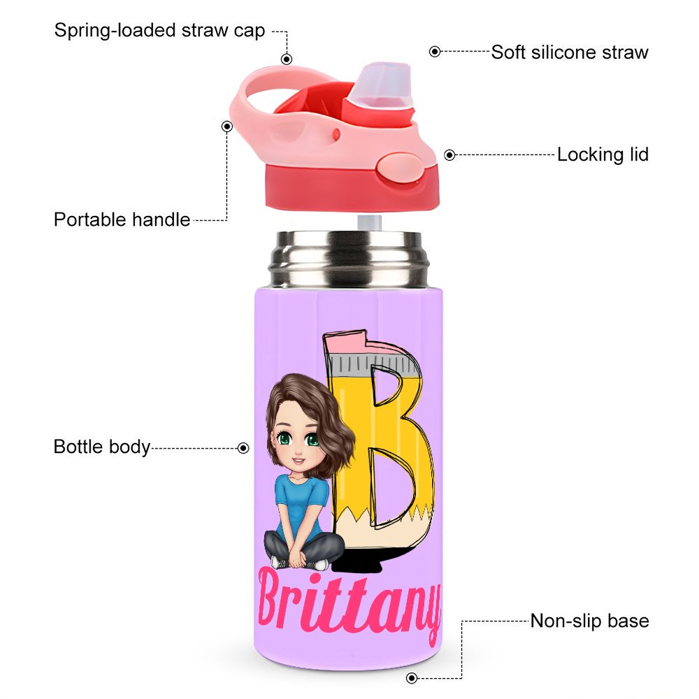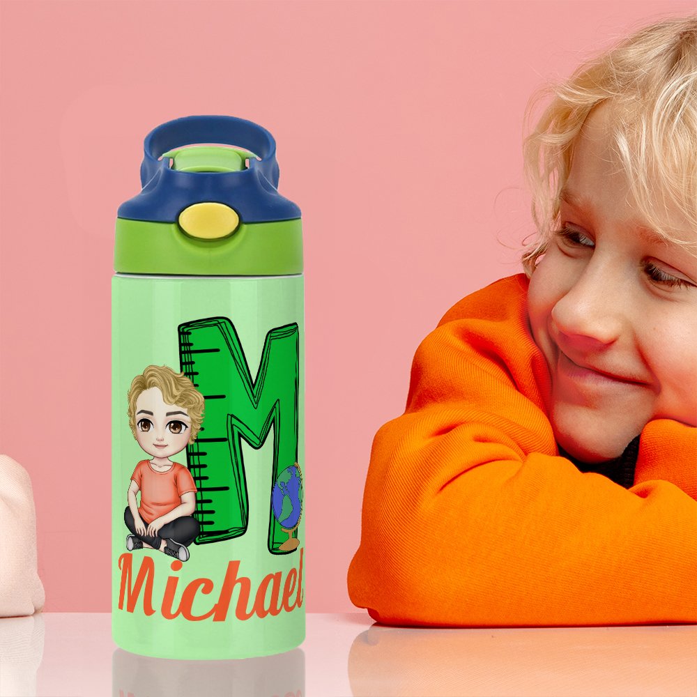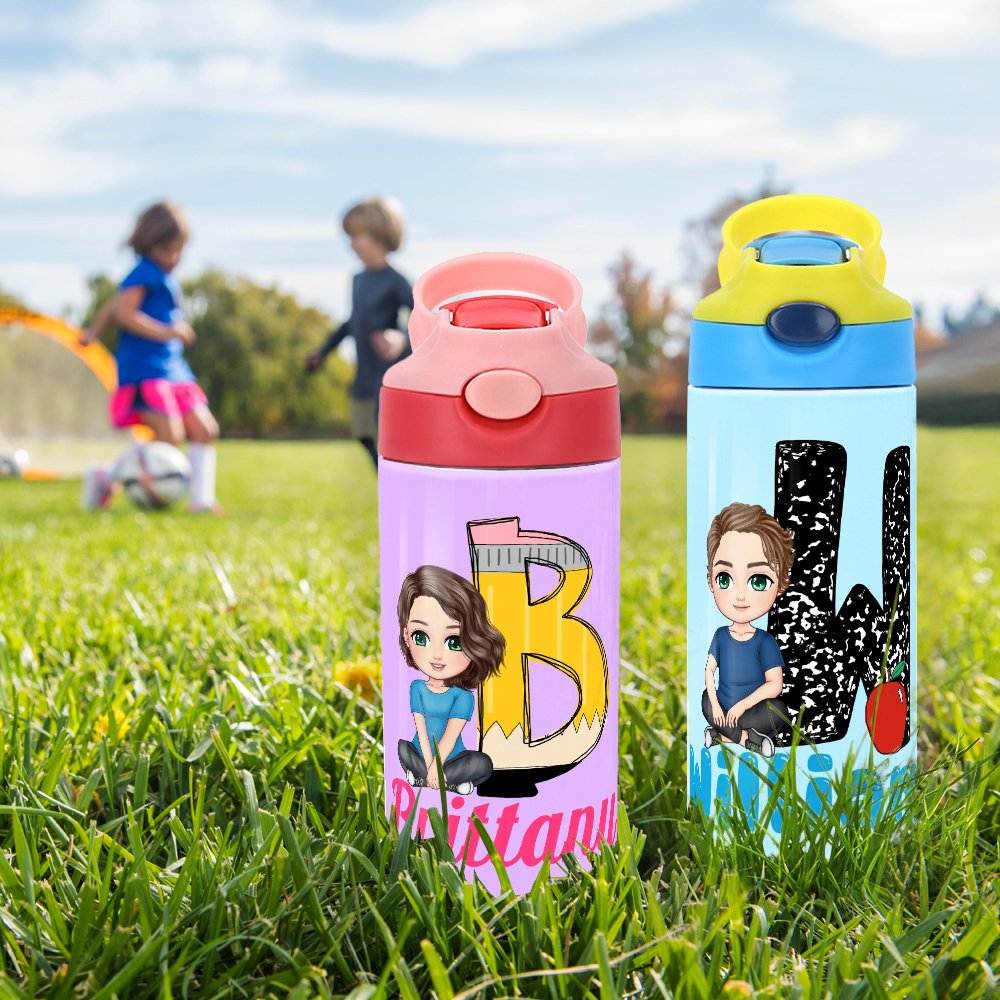 This water bottle is designed with a cute cartoon character and a customizable initial, making each water bottle a special item for your child. There are 5 different initial designs for you to choose from, including pencils, apples, rulers, or notebooks. You can also customize a kid's name on the water bottle to make it more unique.