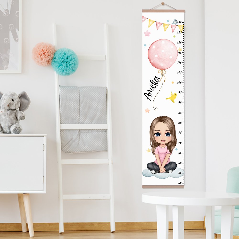 Personalized Cartoon Character Birth Flower Balloon Hanging Growth Chart with Name Bedroom Decor Birthday Gift for Kids