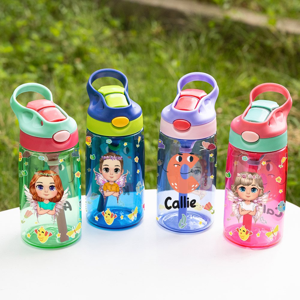 This is a practical and fun water bottle. The water bottle design can be customized according to your needs with your name, birthday flowers, cartoon initials, and character portraits with wings so that each child has a unique water cup, a special and unique gift they will love.