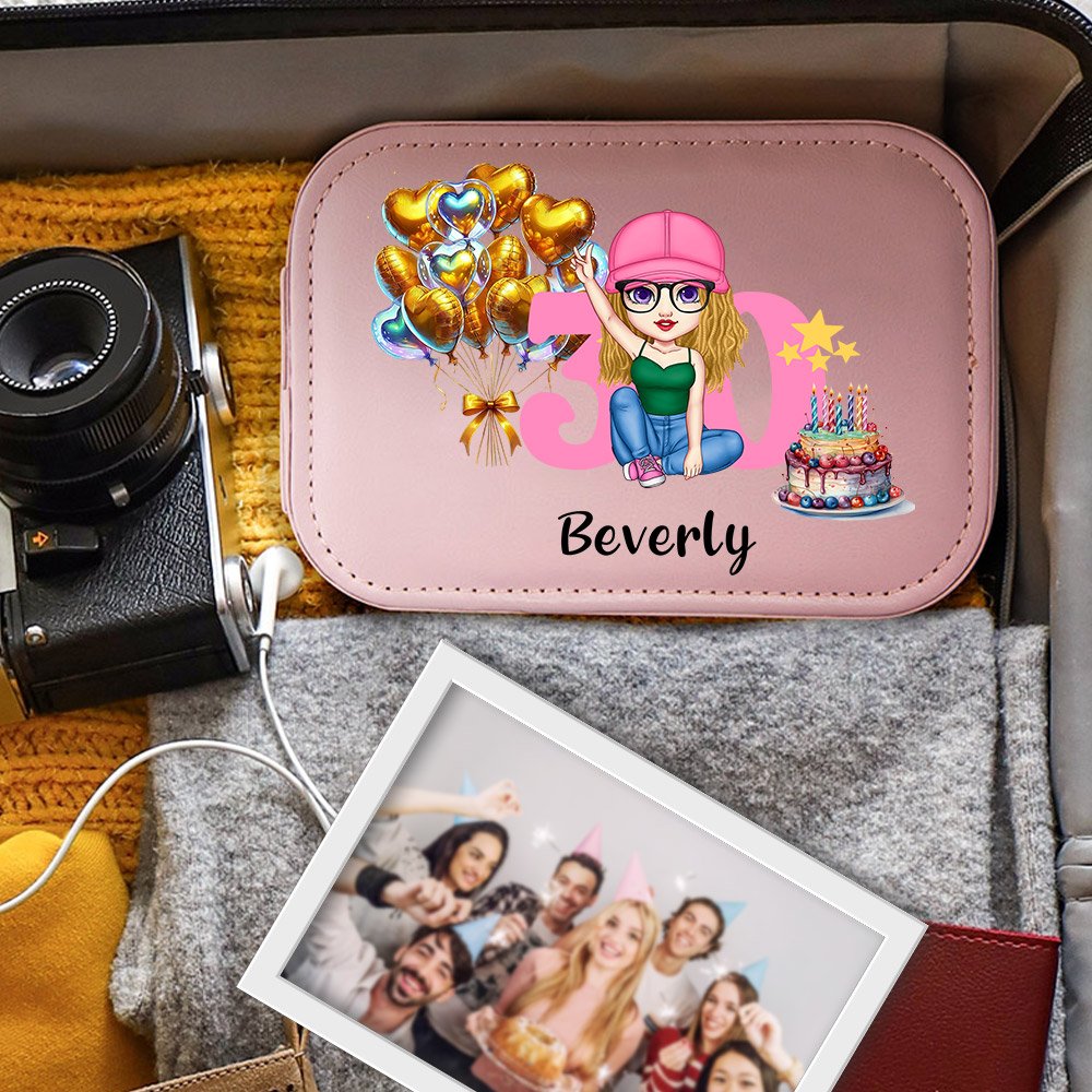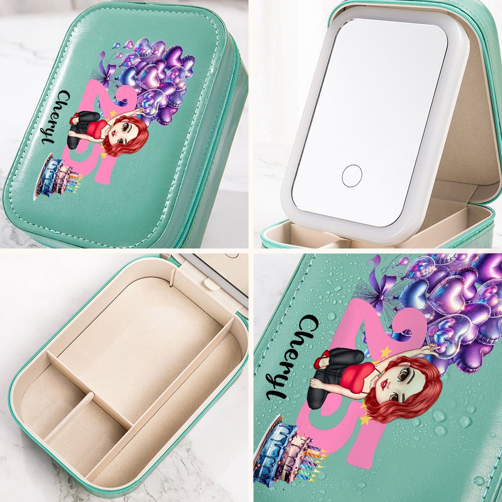 This makeup box features a design with cartoon characters, with various cakes and balloons printed on the surface, perfectly capturing the joyful atmosphere of a birthday. Additionally, the surface can be customized with a name, adding a personal touch and giving every girl her own unique beauty space.
