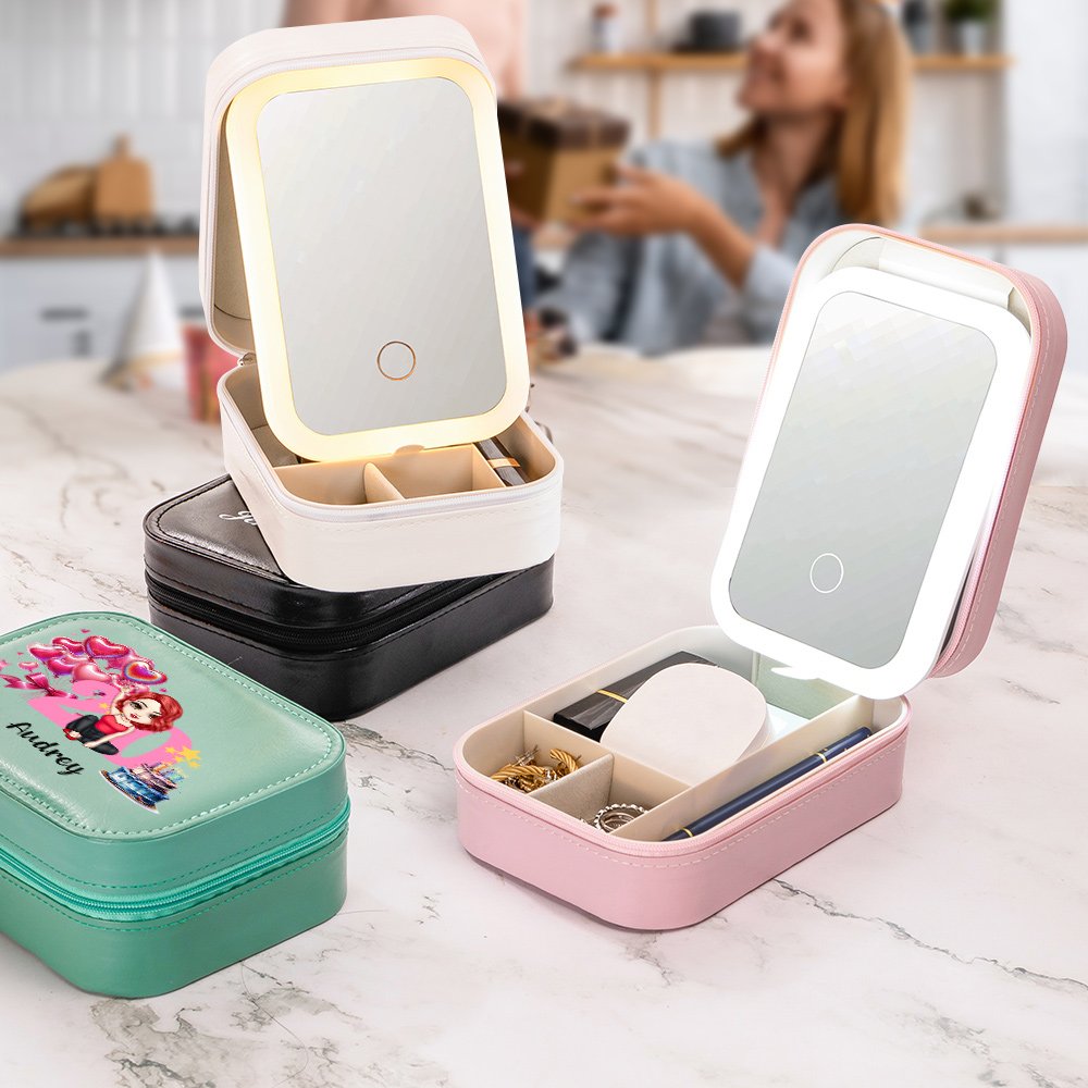 Convenience and functionality come together in this makeup box, which features a built-in LED tri-colour adjustable mirror on the lid, offering three different lighting modes: warm light, natural light, and cool light, to create various atmospheres. Simply press and hold to easily adjust the brightness to achieve the ideal lighting, allowing you to touch up your makeup anytime, anywhere, and maintain a flawless look.