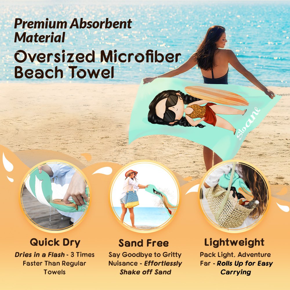 This beach towel is adorned with a cute vacation-themed cartoon character as the core design, delivering a sweet summer vibe and perfect family matching style. Available with a customizable cartoon character and fresh background colours, it fully captures the relaxing atmosphere of beach getaways. You can also add a personalized name for a unique, playful touch.