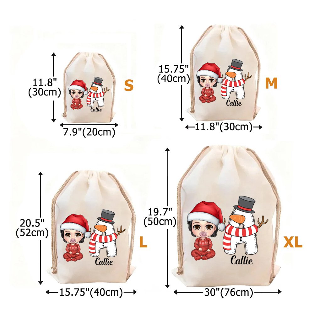 Personalized Cartoon Character Snowman Reindeer Initial Drawstring Gift Bag with Name Christmas Gift for Kid Adult