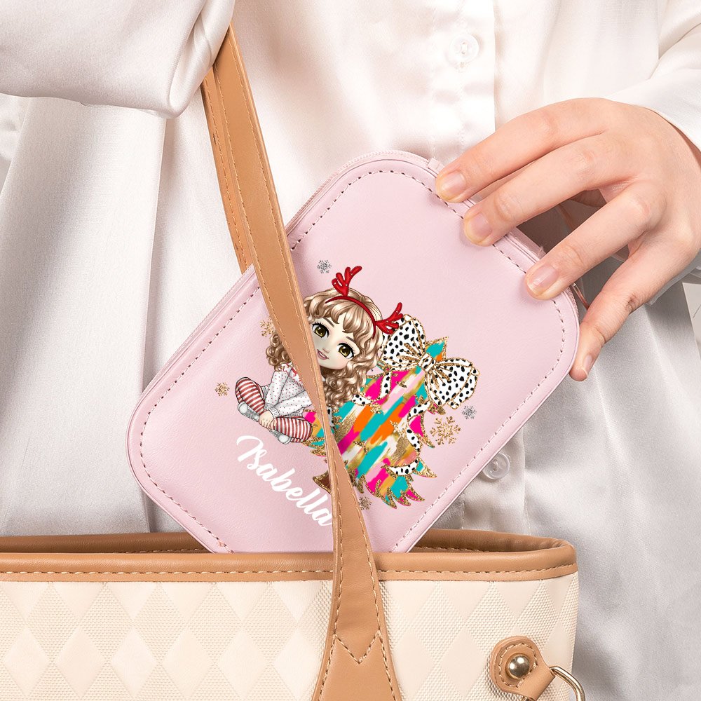 Our jewellery box features a faux glittering, colourful Christmas tree design with a delicate bow-knot and a highly personalizable cartoon girl character, which is playful and cute, perfect for the Christmas atmosphere. You can add your name to it to create a unique souvenir.