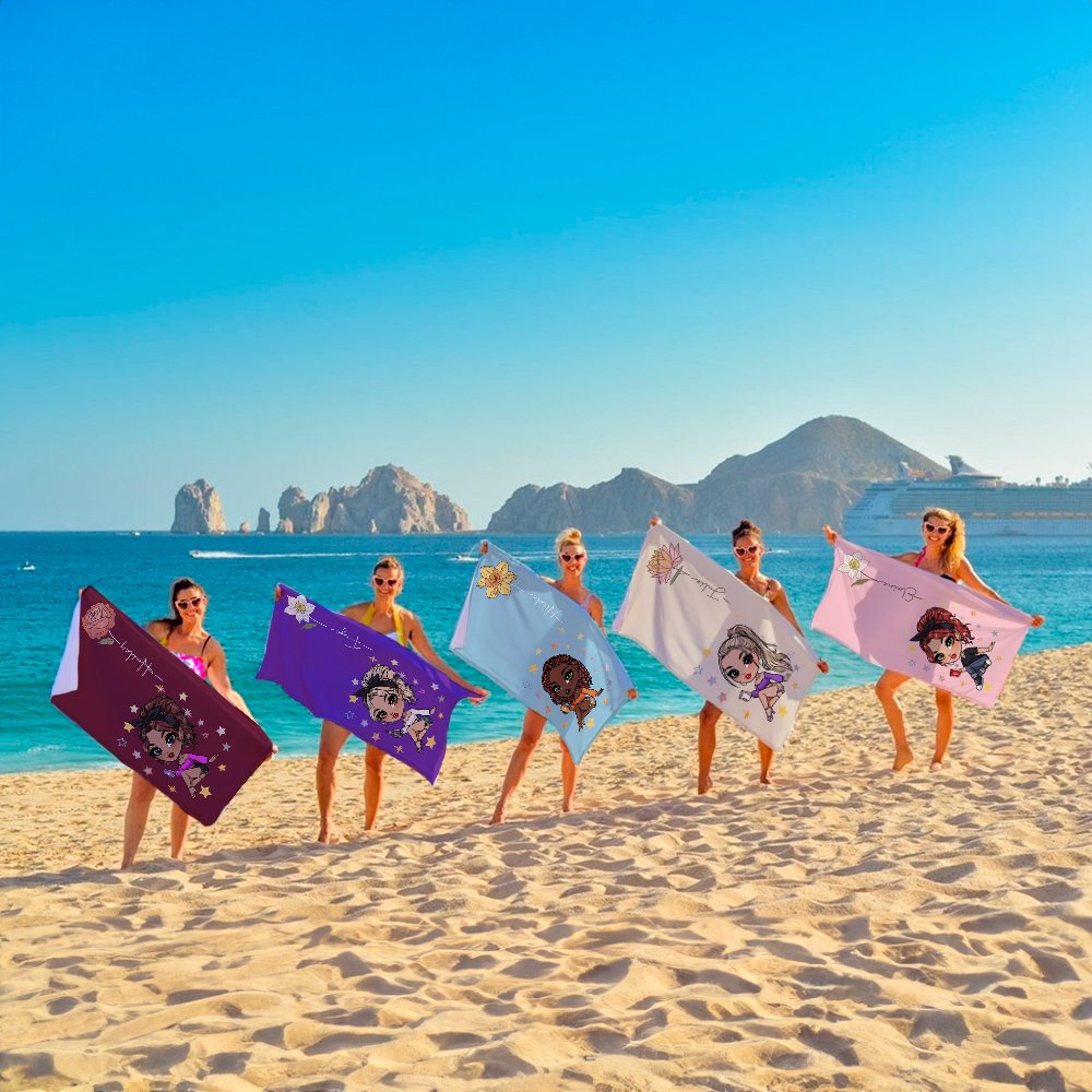 Personalized Cartoon Fashion Girl Birth Flower Quick Dry Oversized Microfiber Beach Towel with Name Summer Travel Essential Birthday Gift for Her