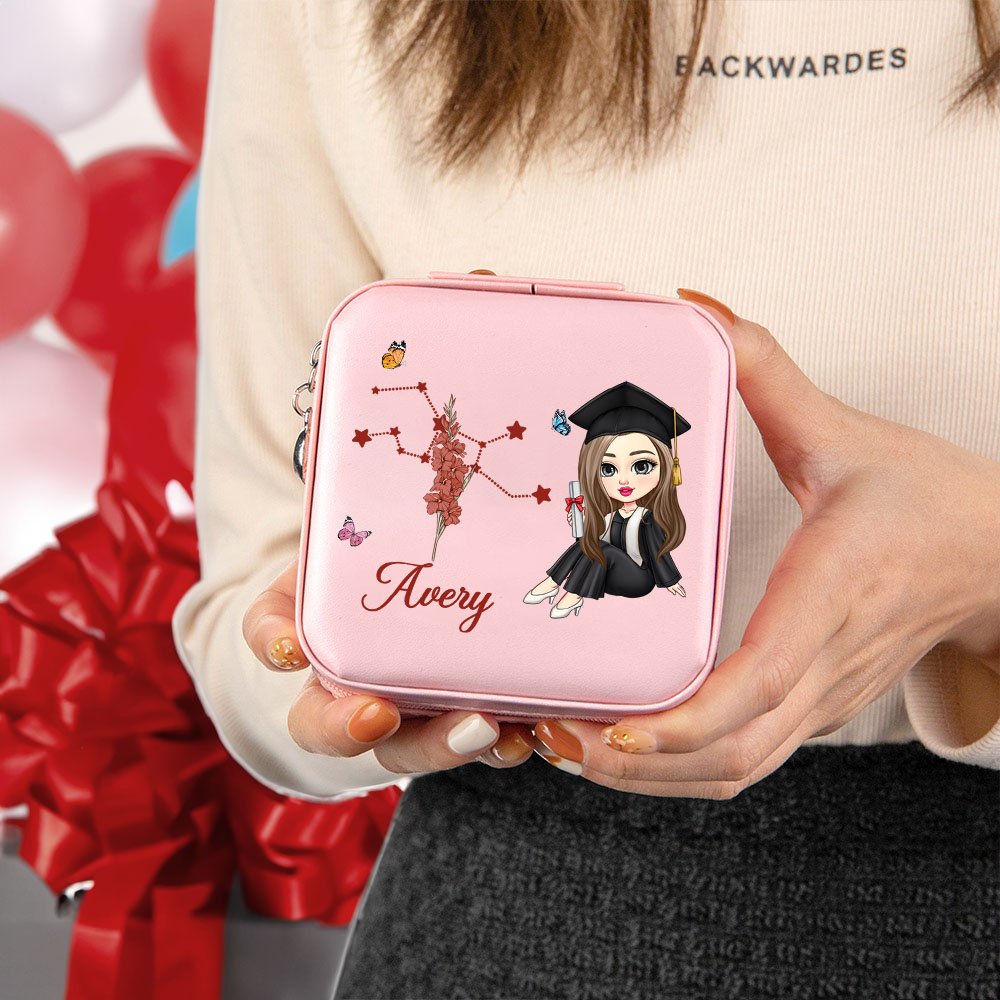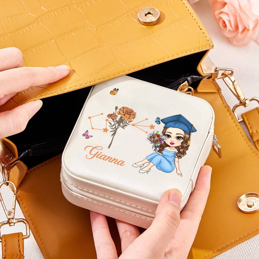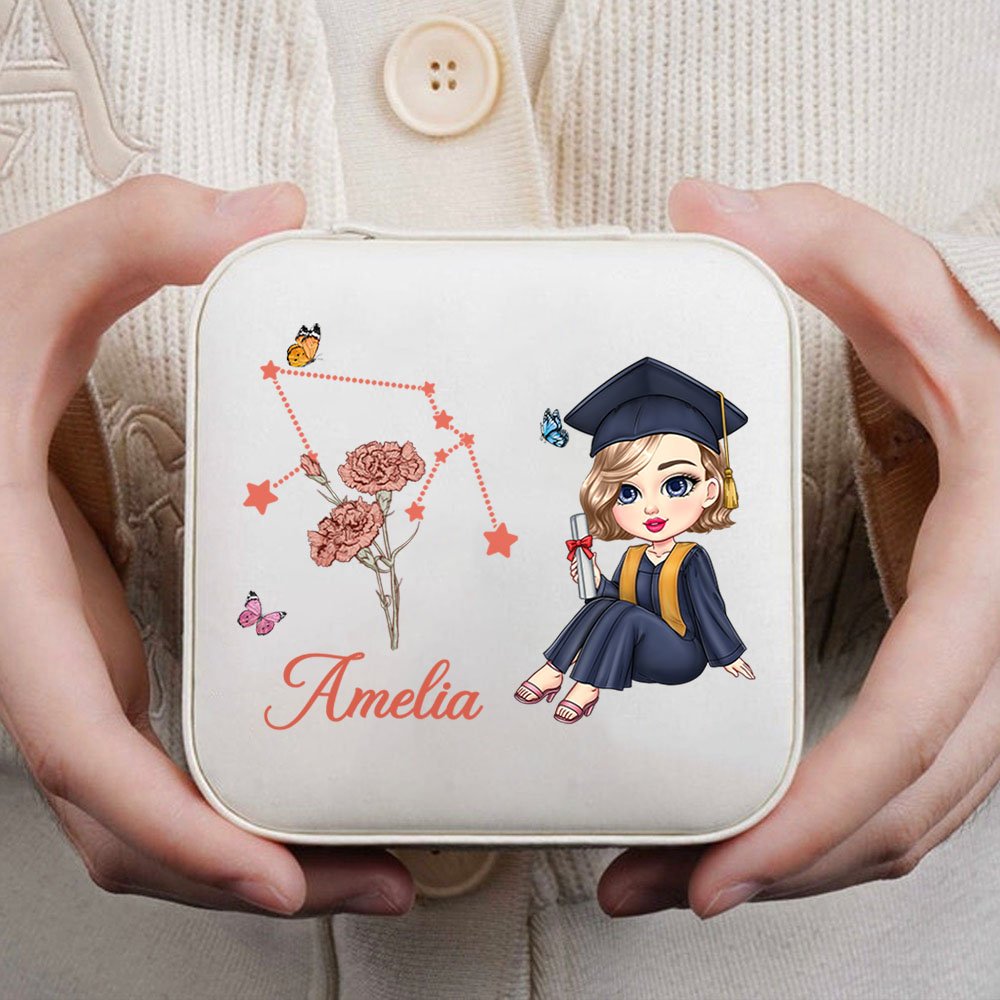 Personalized Cartoon Graduate Horoscope Birth Flower Jewellery Box with Name Graduation Birthday Gift for Women