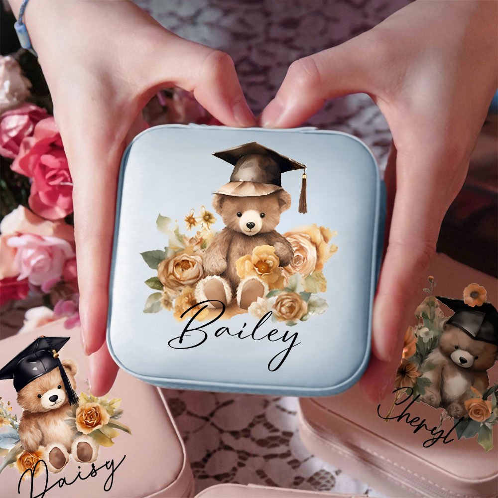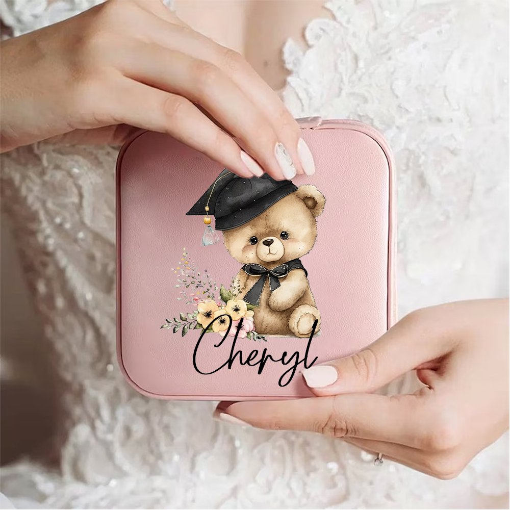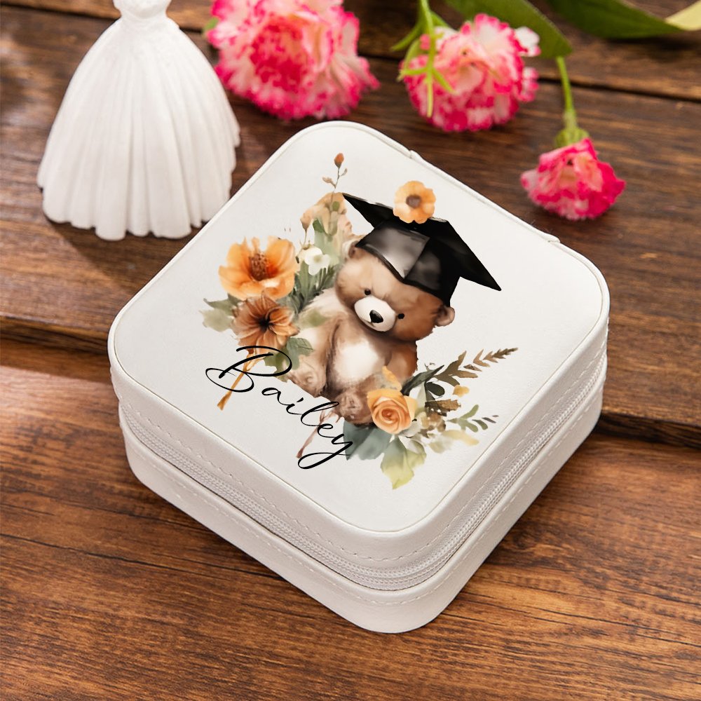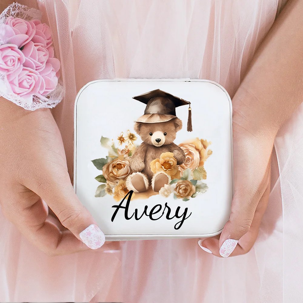 The front of this jewellery box features a cartoon graduation bear design, available in four design styles. The cute bear wears a graduation cap and is surrounded by flowers, showing its beauty. You can add the graduate's name to it, making it a unique work of art that both highlights personality and conveys warm wishes.