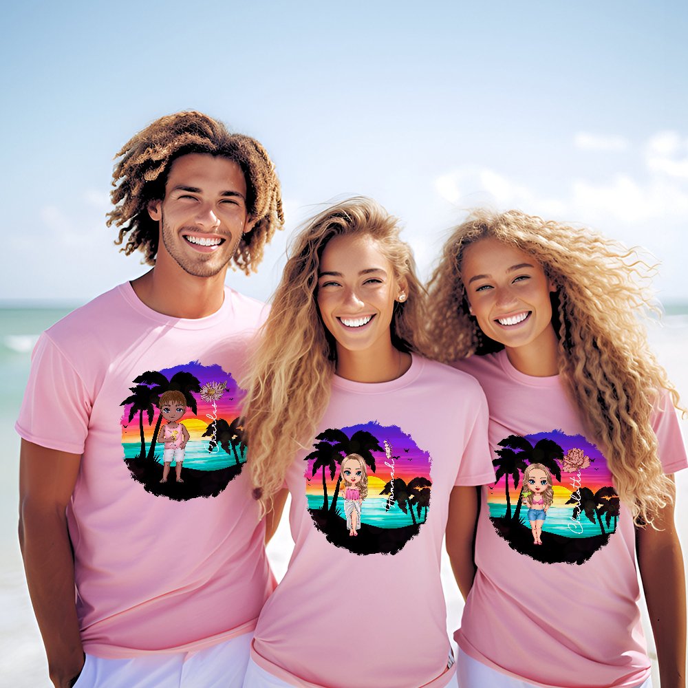 This t-shirt can be paired with shorts, skirts, or jeans, making it a versatile addition to everyone's wardrobe. Whether attending a beach party, vacationing, or simply enjoying a casual day out, this t-shirt is a stylish and fun choice.