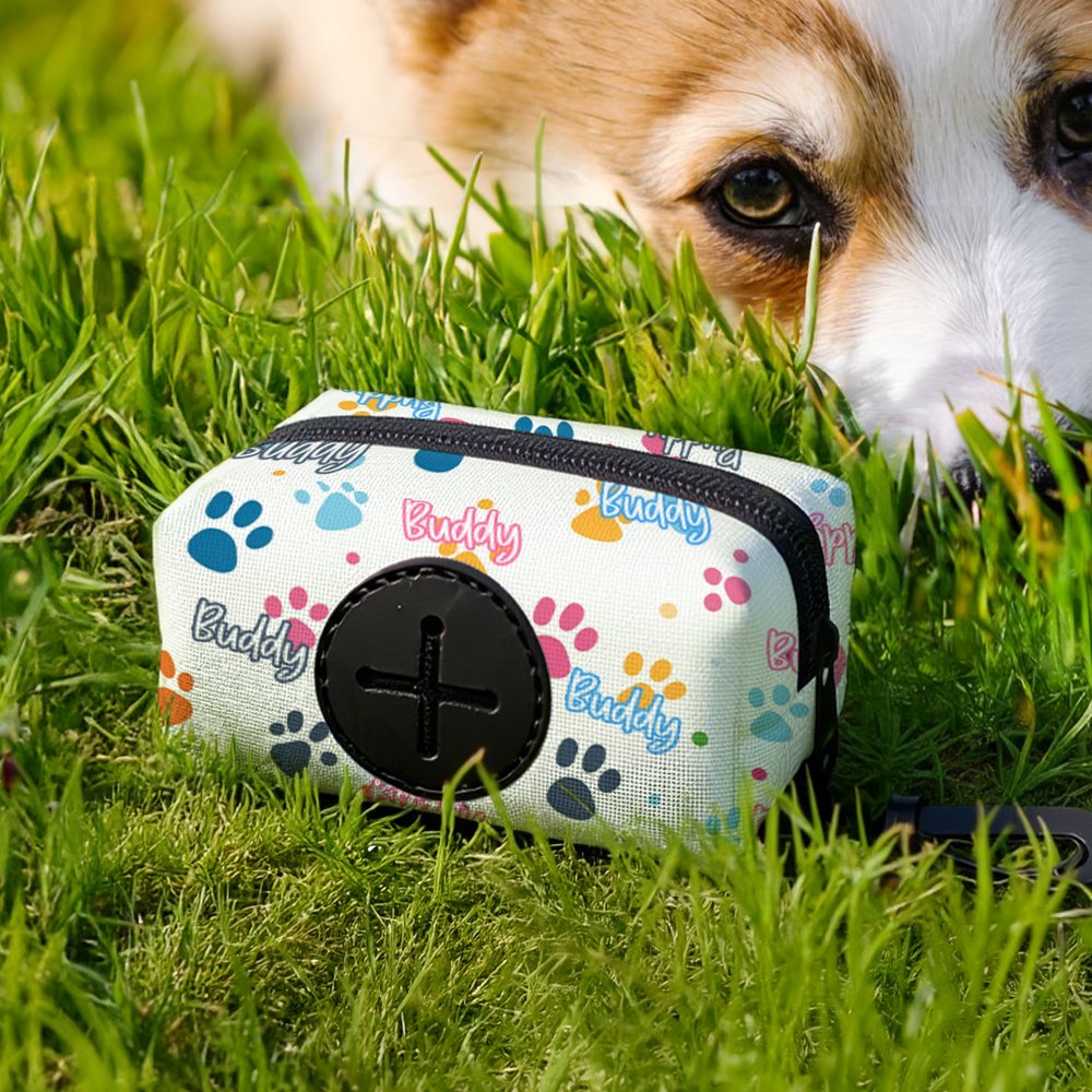 The colourful paw prints on the bag are lively and full of pet-themed fun. You can customize it with the owner's or pet's name, turning the practical accessory into a Personalized finishing touch. The bold, contrasting colours and the cute paw prints make this storage bag an eye-catching accessory on the go.