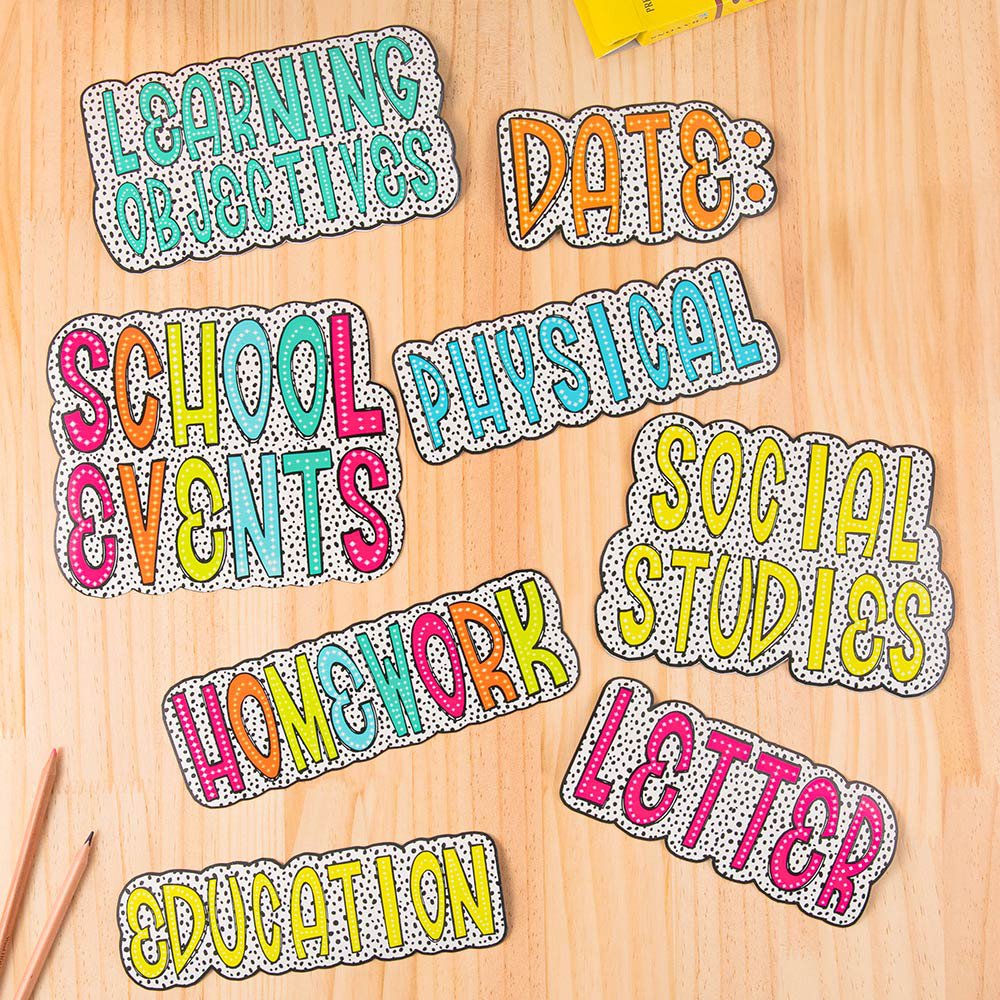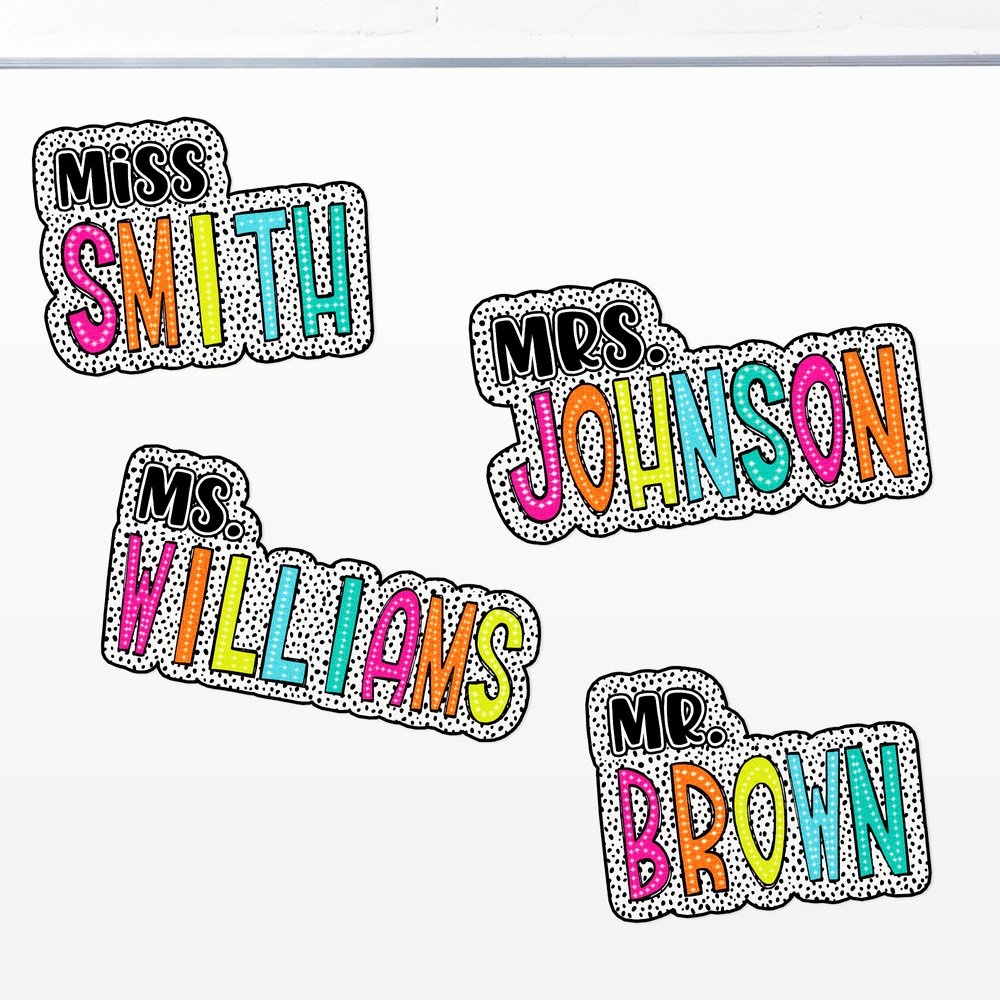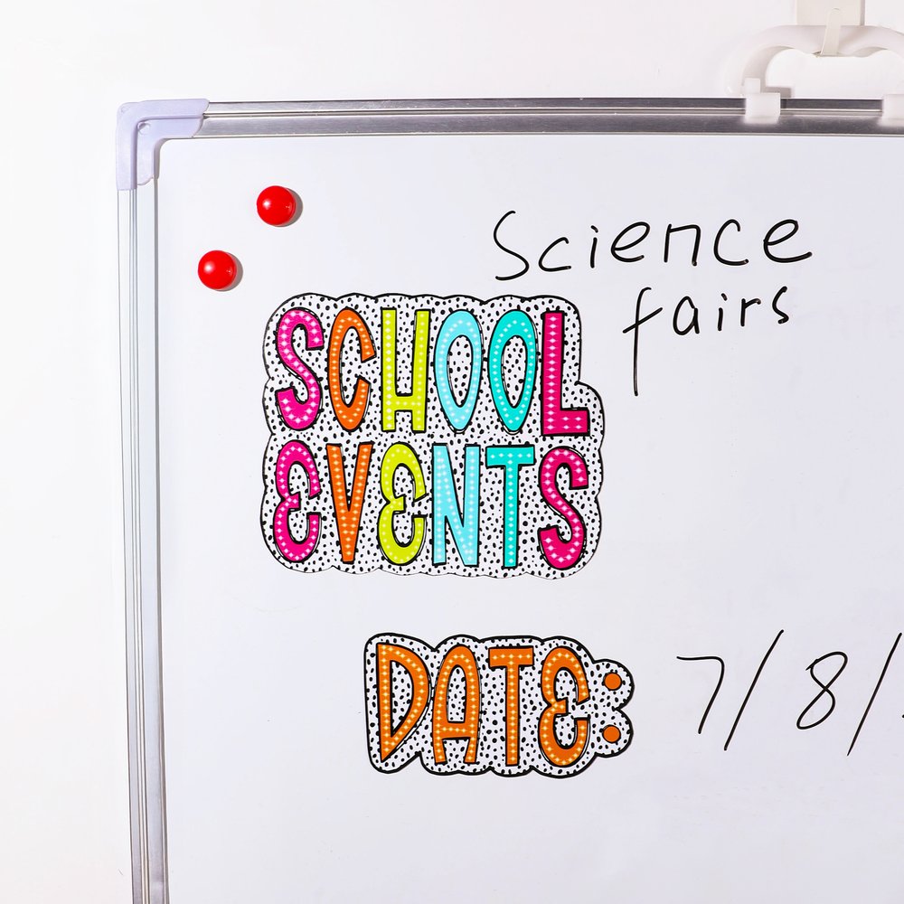Our whiteboard magnets feature a colourful Dalmatian dots design that is very eye-catching. You can customize it with your name, slogan, phrase, and more to create your interactive classroom tool.