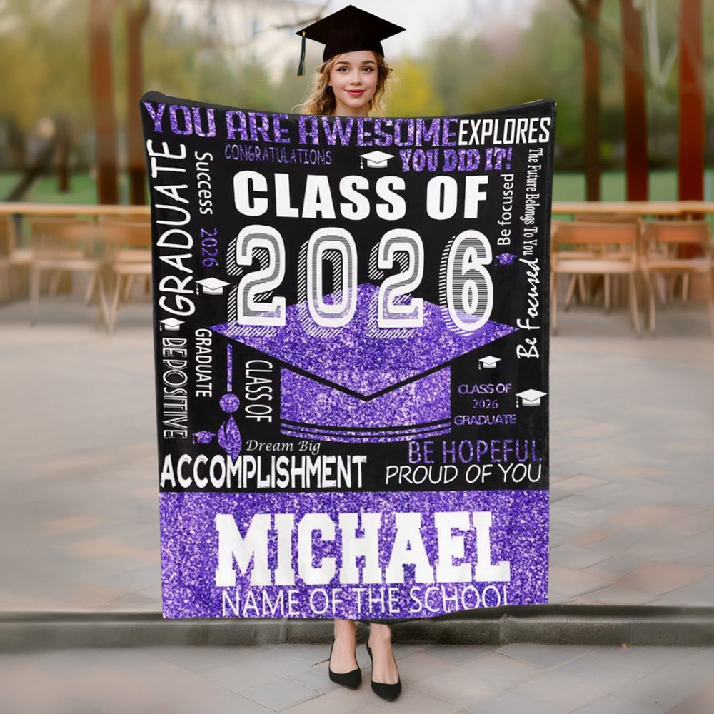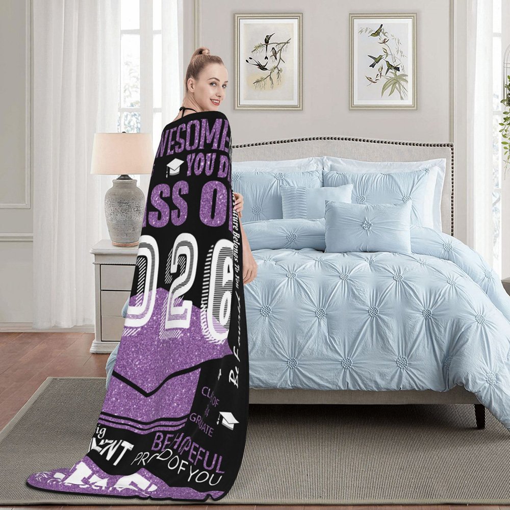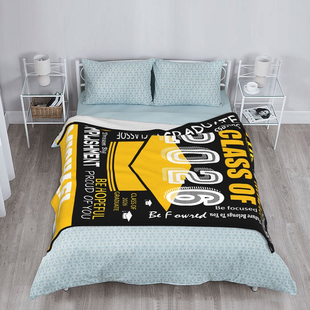 The design of this blanket is very eye-catching, with bright colours, the pattern of the bachelor's cap in the middle of the blanket can be associated with the graduating students, and the blanket is covered with various texts, which is very design. You can also print the student's name and the school's name on the bottom of the blanket to make it even more unique.