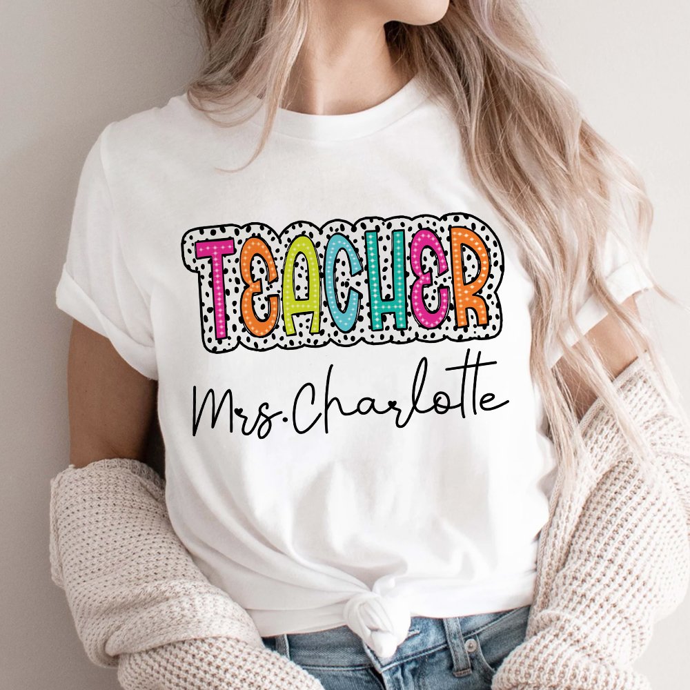 This Dalmatian Polka Dot Clothes features a one-of-a-kind design and can be Personalized with rainbow-style text to reflect the teacher's profession or grade. You can also customize the teacher's name to incorporate your sincere emotions. The stylish Dalmatian pattern highlights the personality of the clothes, allowing the recipient to feel your thoughtful care and impeccable taste.
