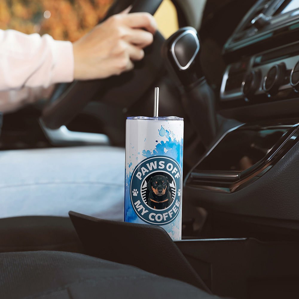 This tumbler features a vibrant, eye-catching design that combines various colourful patterns with the iconic brand coffee logo, making it a stylish and practical accessory for any dog or cat lover. But the real magic comes when you add your own personal touch - upload a photo of your beloved furry friend, and we'll print it centre onto the logo design, creating a unique and heartwarming keepsake.