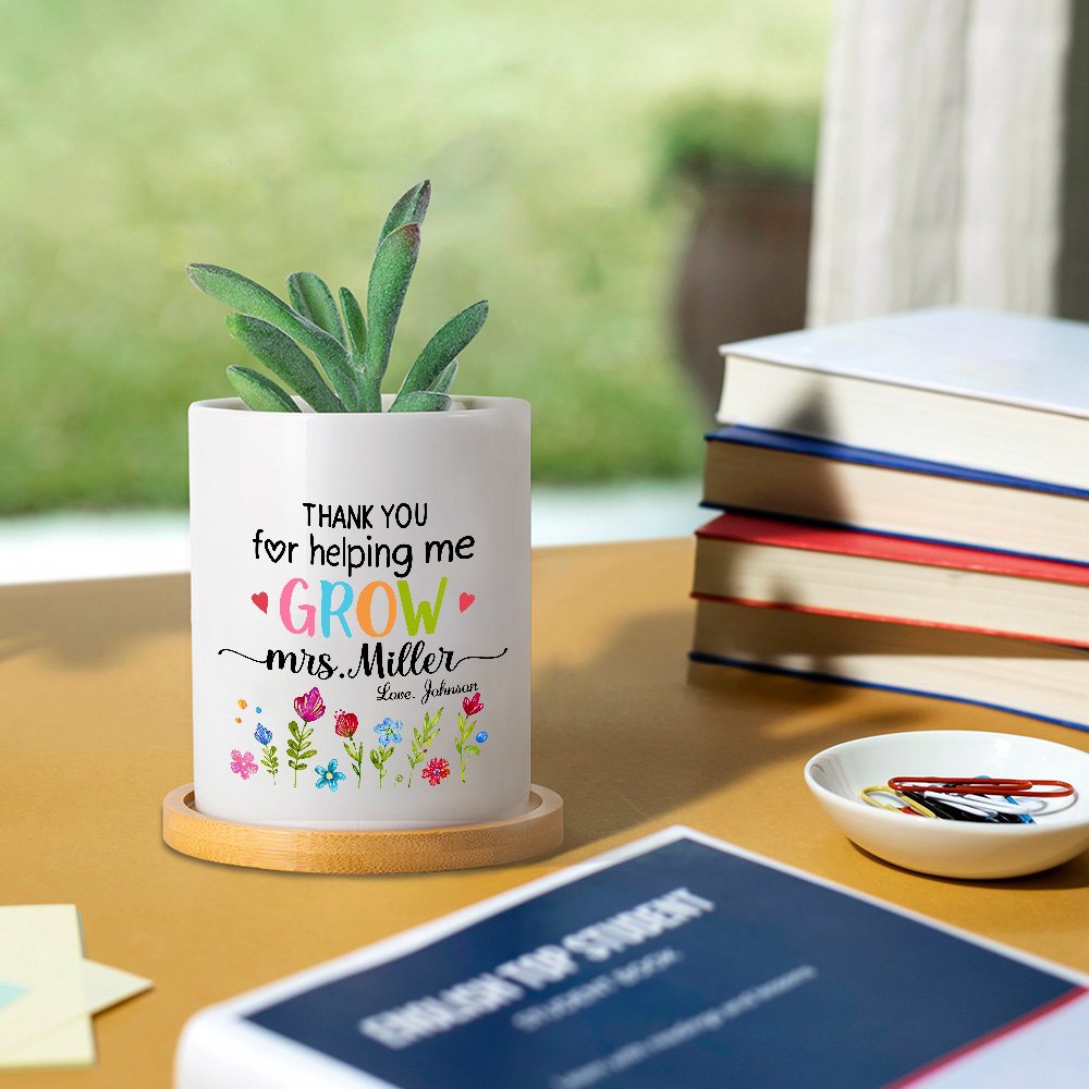 Choose a gift to brighten your teacher's classroom or home. This Personalized ceramic flower pot adds a touch of beauty and a constant reminder of their impact on your growth and development.