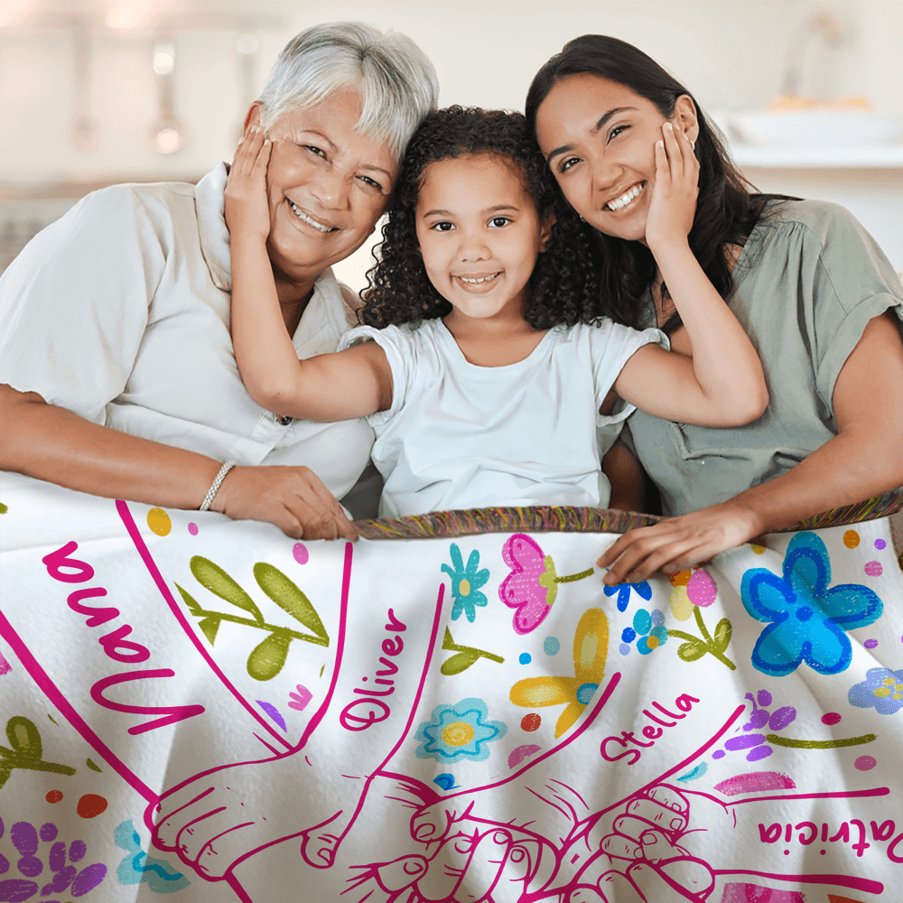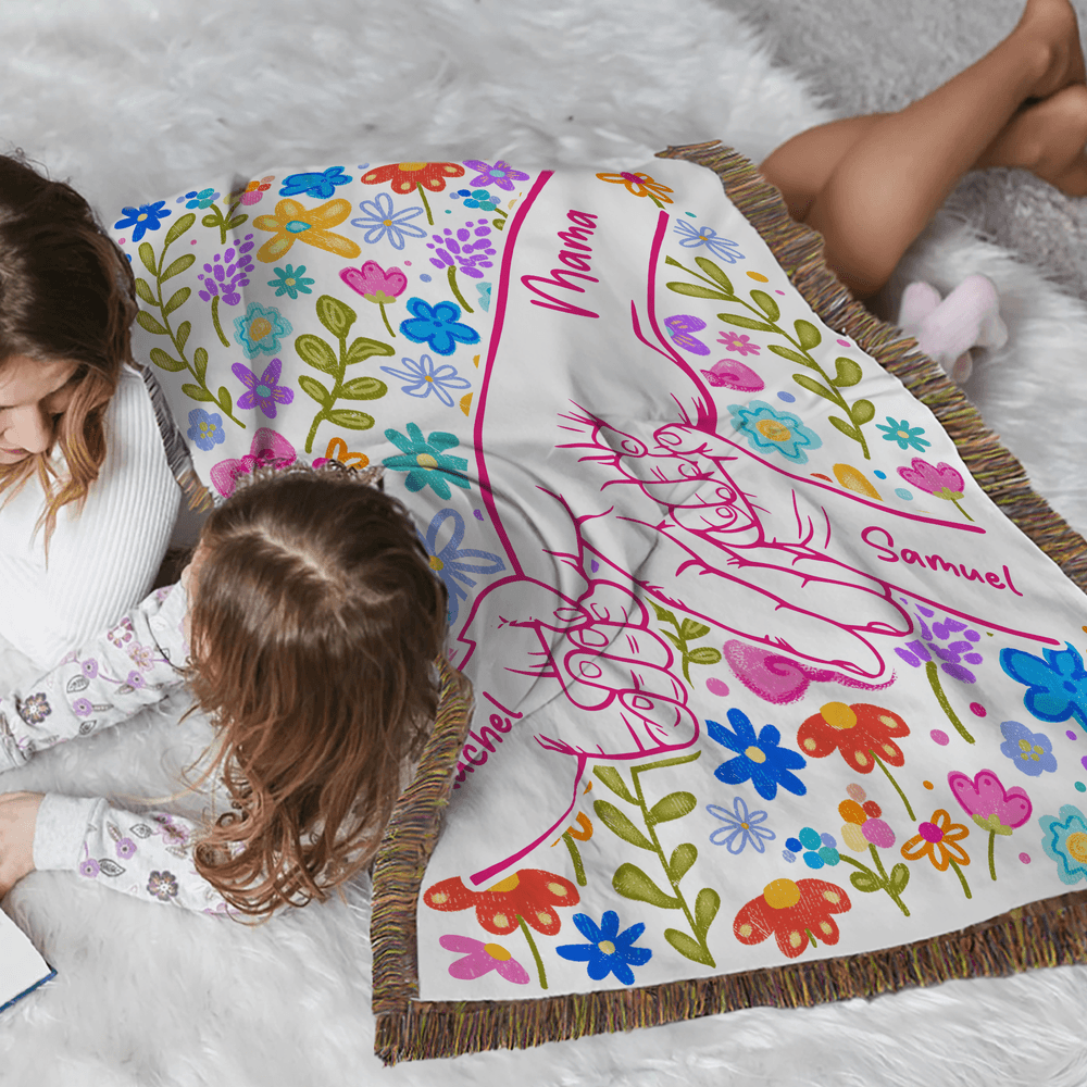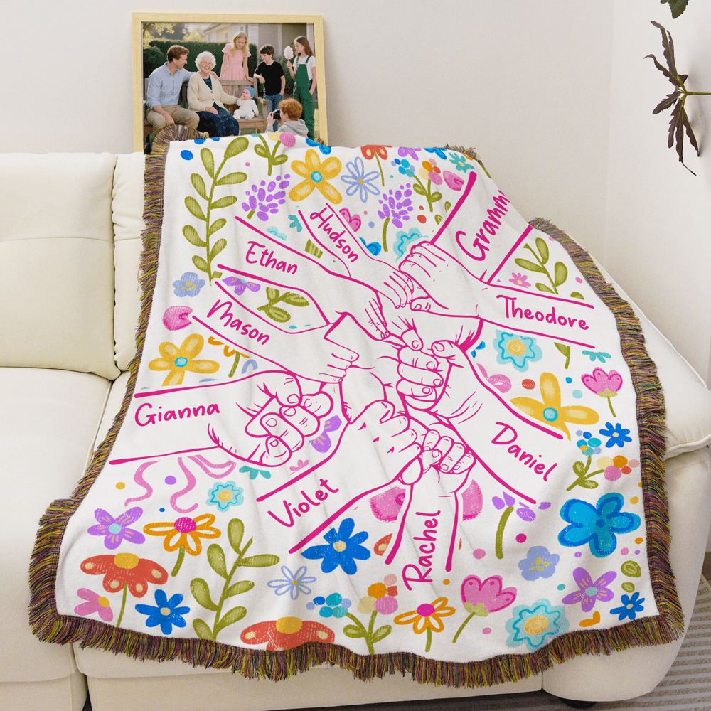 Personalized Colourful Flower Hand Soft Tassel Throw Blanket with Name Home Decor Mother's Day Birthday Gift for Mom Grandma