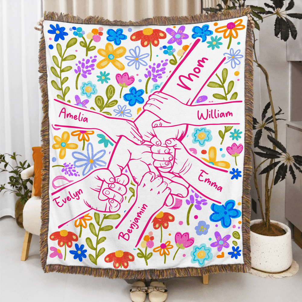 With vibrant flowers and a large hand holding small hands as its core elements, and the option to customize names, this design creates a warm and romantic atmosphere. Delicate tassel embellishments add a touch of gentle soothingness, imbuing the overall design with a sense of family warmth and commemorative significance.
