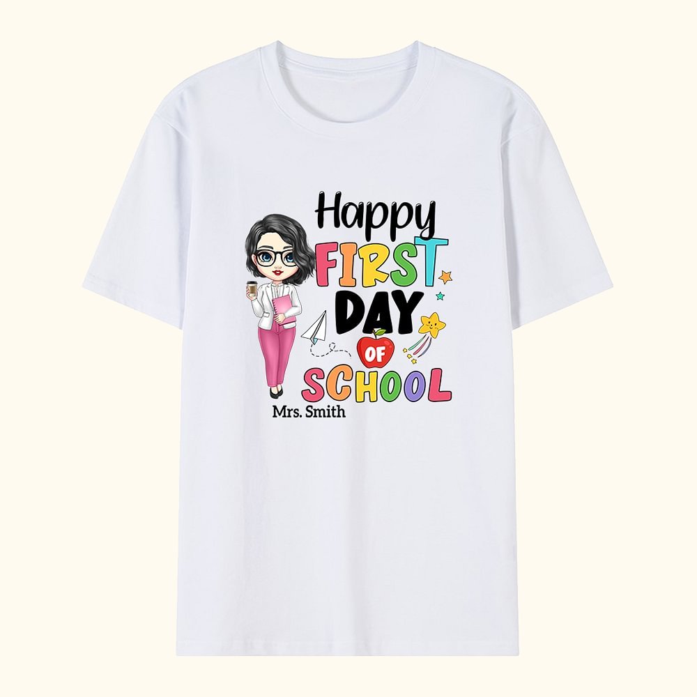 This "Happy First Day of School" unisex t-shirt is a perfect way to express anticipation and well wishes for the new school year. The customized cartoon character and teacher's name add a unique and personal touch to the gift, showcasing thoughtfulness and creativity from the giver. Every time the teacher or student wears this t-shirt, they will feel that special emotional connection and motivation, adding joy and inspiration to the new school term.