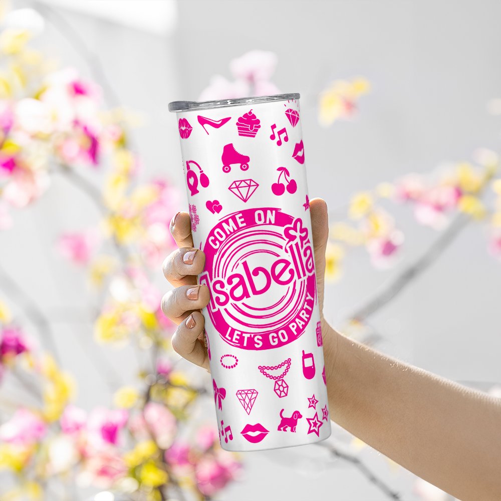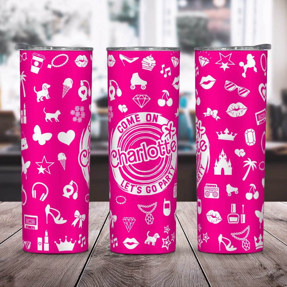 Our skinny tumbler features a stylish pink theme with the phrase "Come on let's go party" printed on it, making it a perfect gift for those who love the colour pink. The option to customize the tumbler with a name adds a personal touch, creating a one-of-a-kind item.
