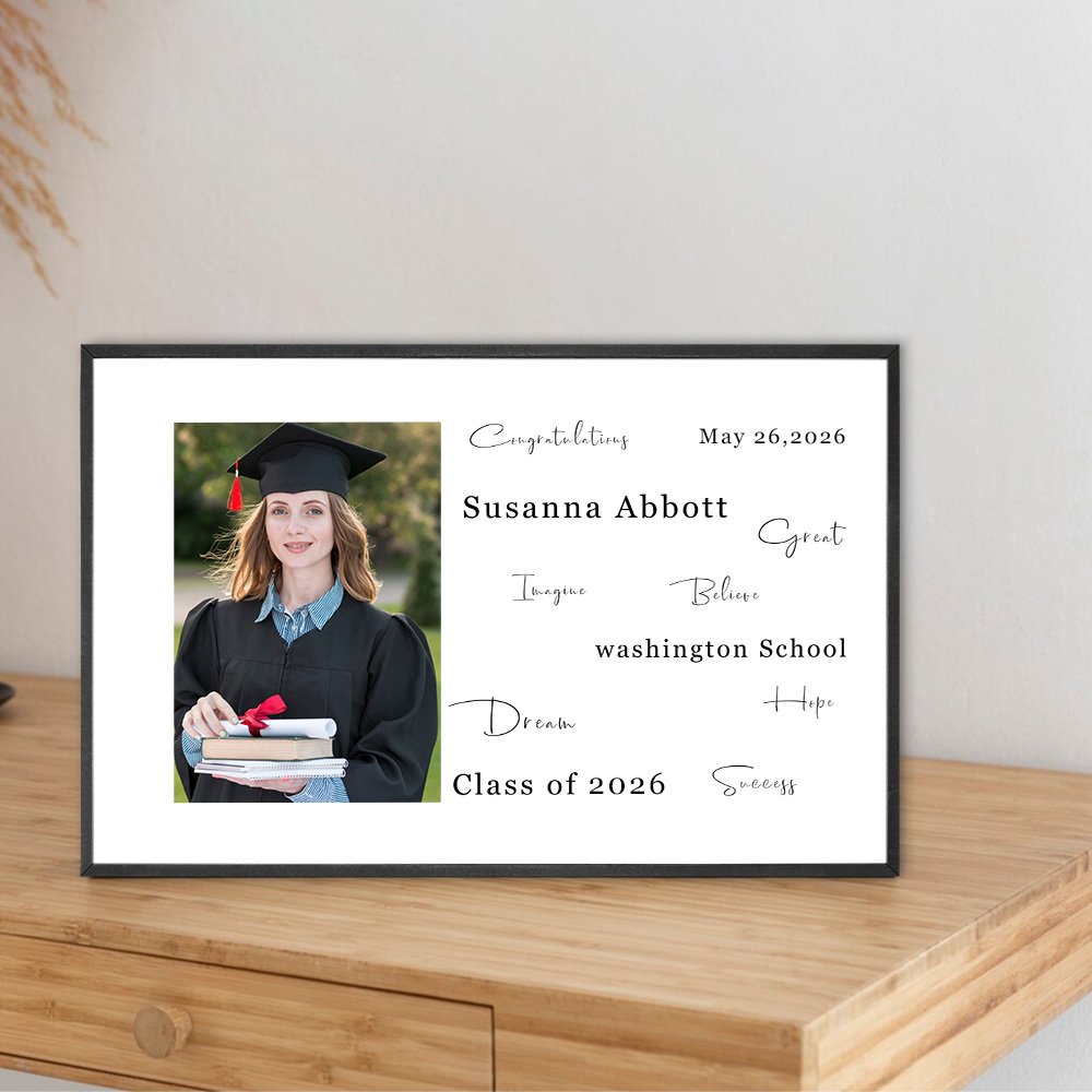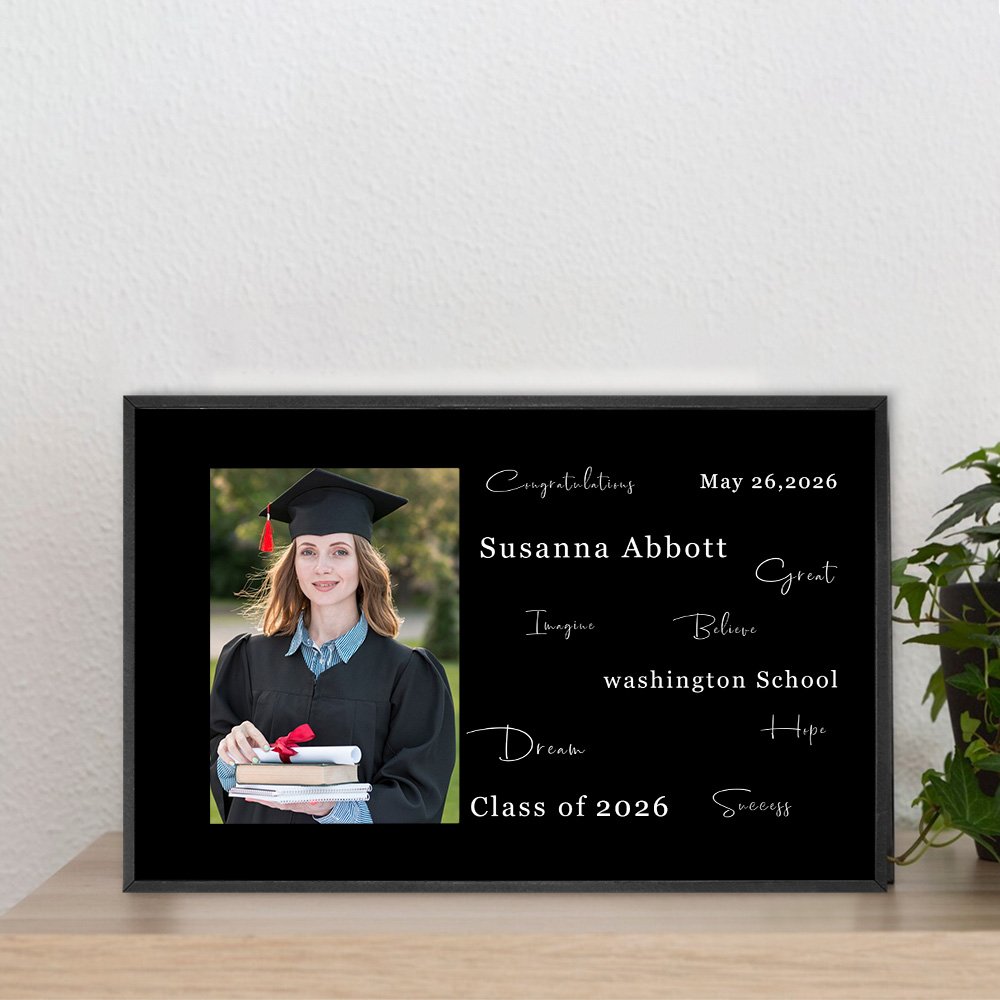 Make this graduation photo frame special by personalizing it with the graduate's name, date, and school name. This design adds a sense of pride and ownership, making it an exceptional keepsake that captures the essence of their accomplishment.