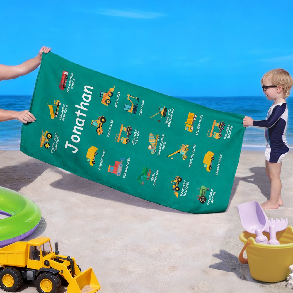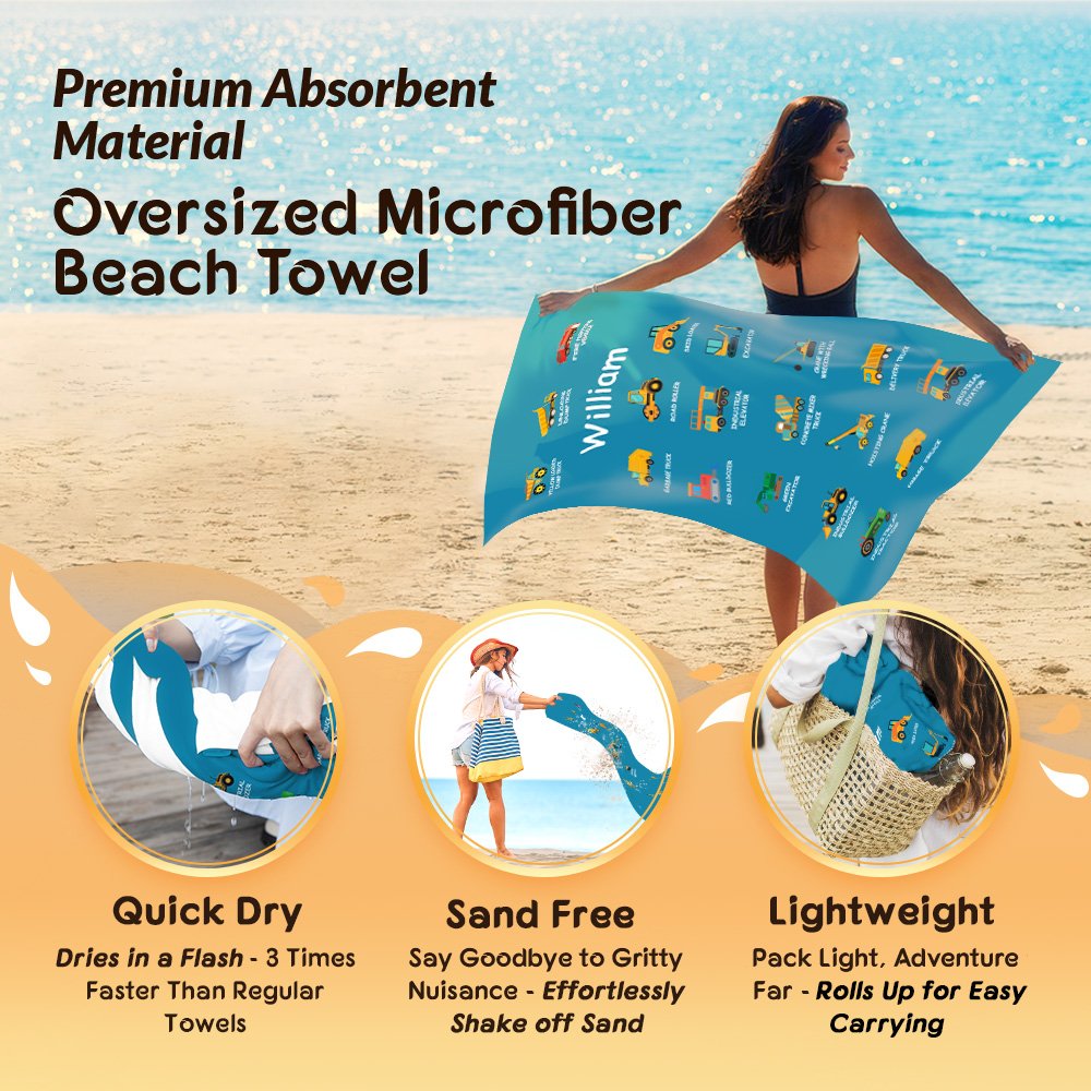 | Feature: | Super Absorbent, Fast Drying, Sand Free, Durable and Soft, Oversized, Lightweight and Portable, Construction Truck Design, Text Customization |