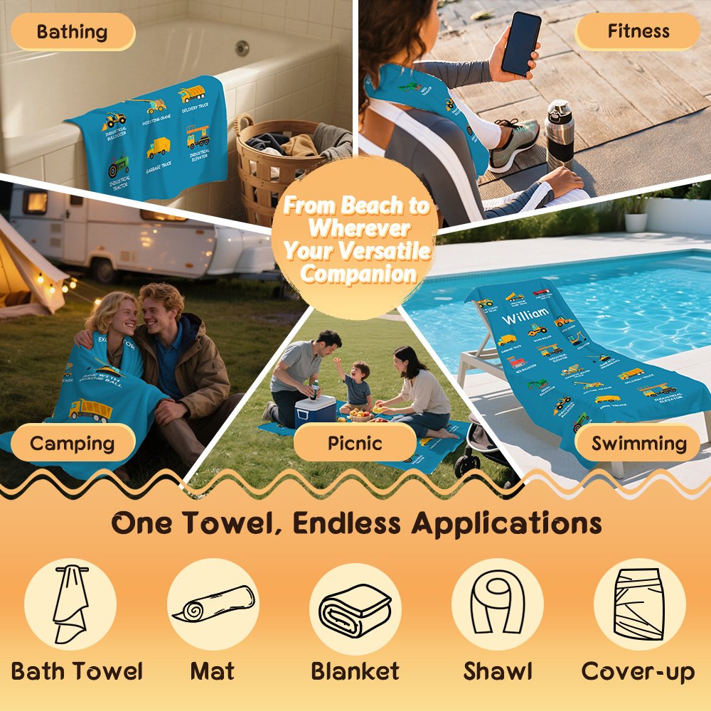 It's suitable for birthdays, Christmas, or as a casual surprise gift, conveying your love and care through its unique custom design. It's especially popular with construction Lorry lovers; both boys and girls will be delighted to receive a beach towel printed with their favorite construction Lorry.