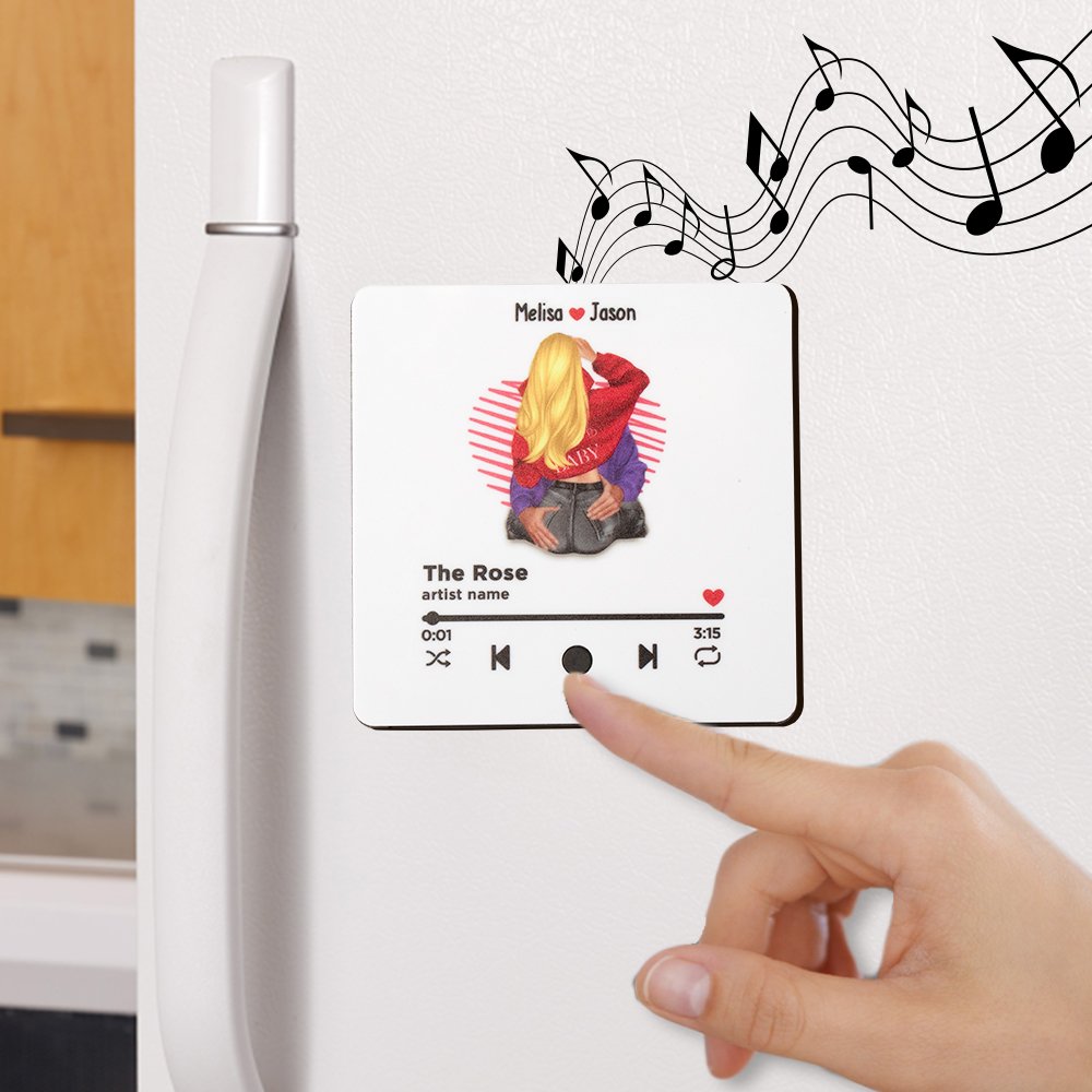 This charming fridge magnet combines a Personalized cartoon couple with your favorite song, making it the perfect gift for couples. You can customize the characters and song title, creating a unique musical keepsake.
