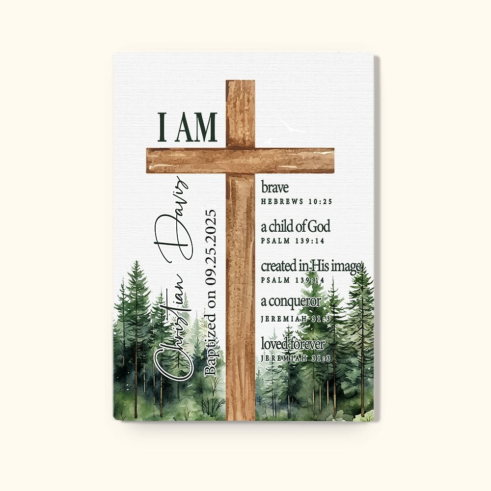 The exquisite design features a wooden cross, with warm forest patterns and inspiring scripture fragments, creating a peaceful and tranquil visual effect, making it a captivating addition to any room. Personalise it with your child's name and the date of their special occasion to create a cherished keepsake they will treasure forever.