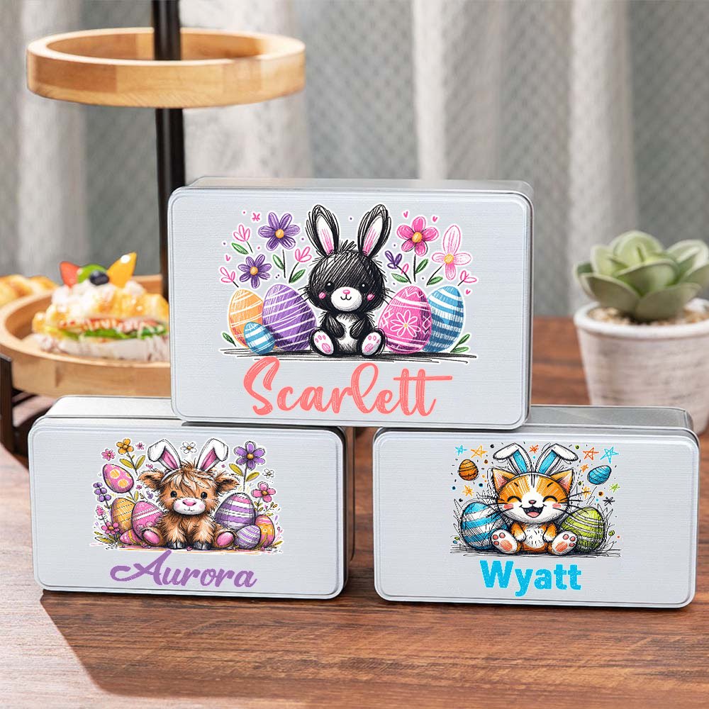 The biscuit tin is printed with cute images of small animals with bunny ears, adding a festive atmosphere to an Easter event or party. You can also customize the name on it to make the Biscuit box even more special. Biscuit tins are available in four sizes to suit your needs and preferences.