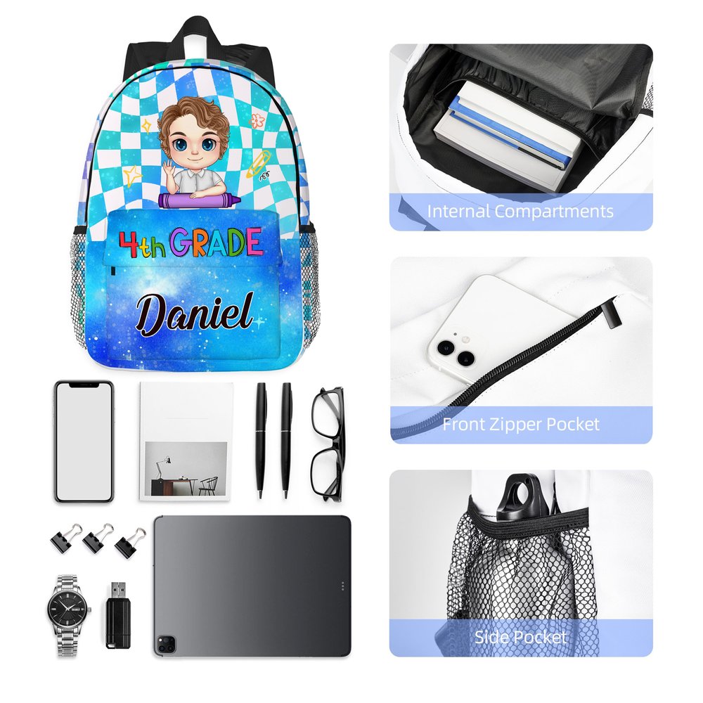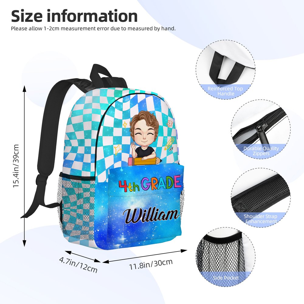 Our children's backpack combines adorable cartoon characters with classic plaid elements and starry sky designs, creating a perfect blend of fun and style. The cartoon images are customizable, offering Personalized entertainment for your child. What's more, you can add your child's name and grade to make the backpack truly unique.