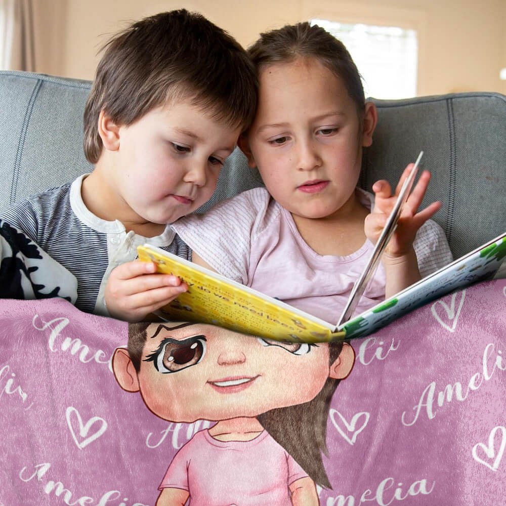 This blanke has cute children's cartoon characters and heart-shaped icons, as well as customizable names. It is thoughtful and unique. It is beautiful for both girls and boys.