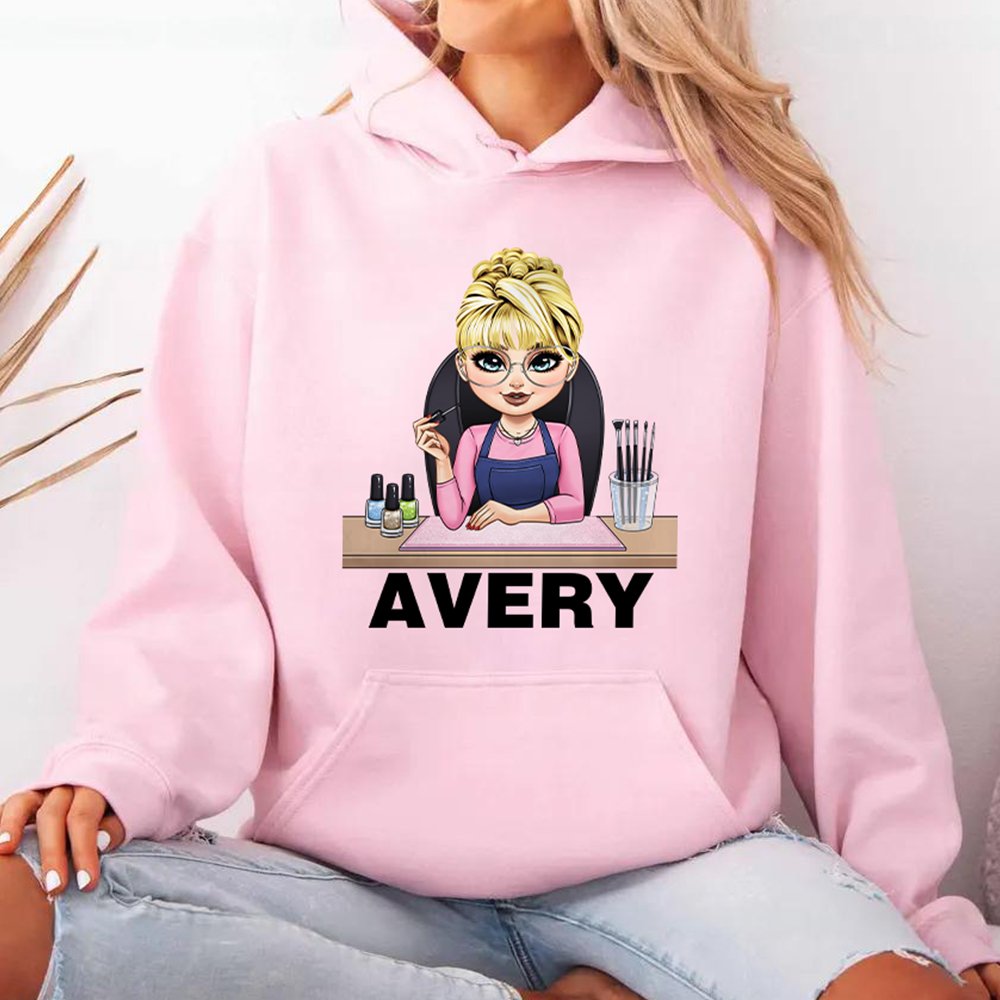 This T-shirt/sweatshirt/hoodie perfectly combines an adorable cartoon girl based on your image with salon-themed elements like nail polish bottles and brushes, creating a stylish yet sophisticated atmosphere. We provide 2 name fonts and 10 font colours so you can choose them based on your preference. You can also customize your name, reflecting your unique personality.