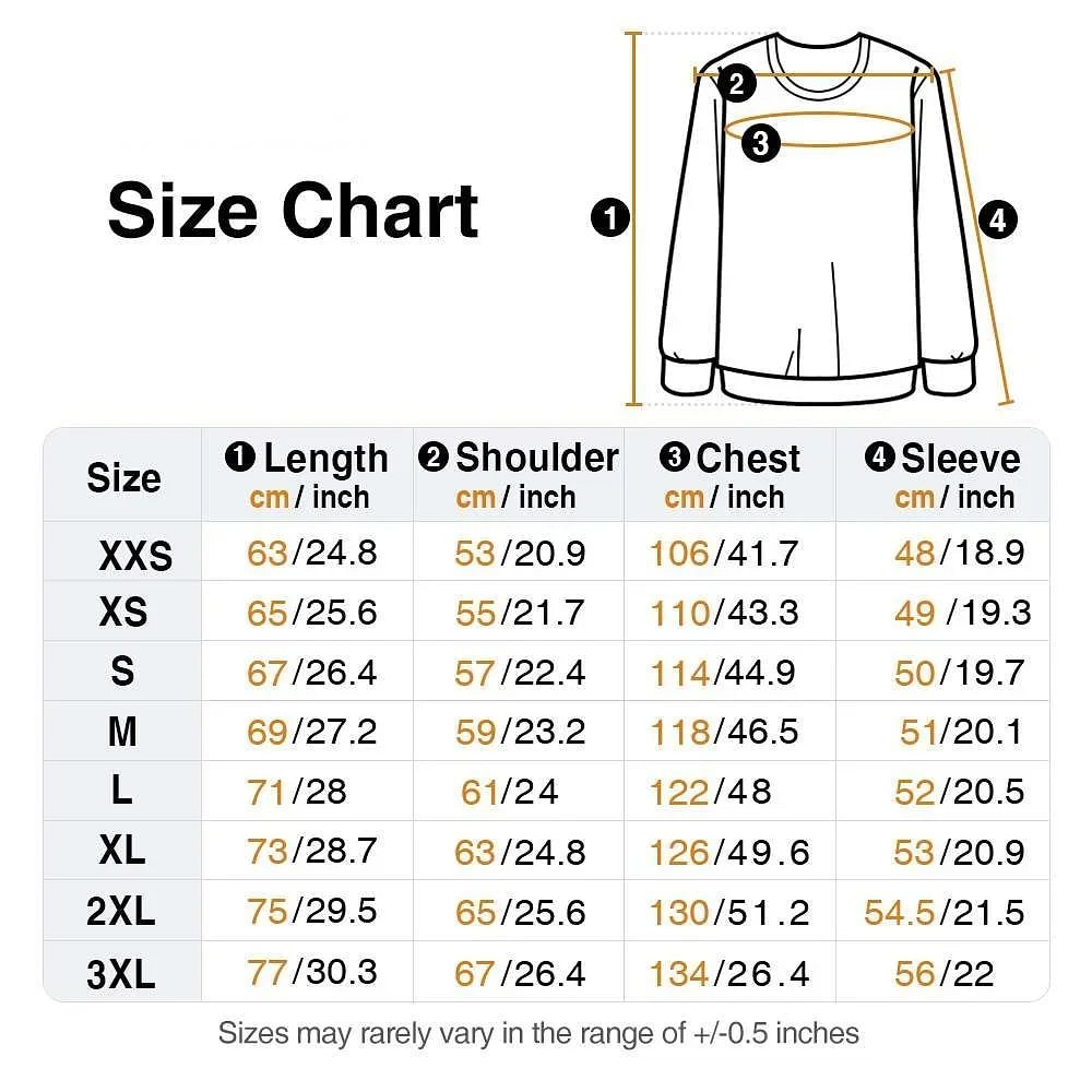 | Measurement: | T-shirt Size - XXS, XS, S, M, L, XL, 2XL, 3XL, 4XL, 5XL Sweatshirt Size - XXS, XS, S, M, L, XL, 2XL , 3XL Hoodie Size - XXS, XS, S, M, L, XL, XXL, 3XL |