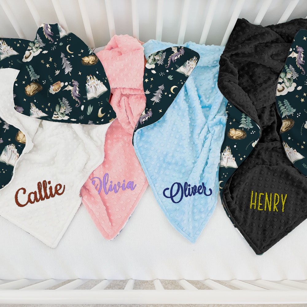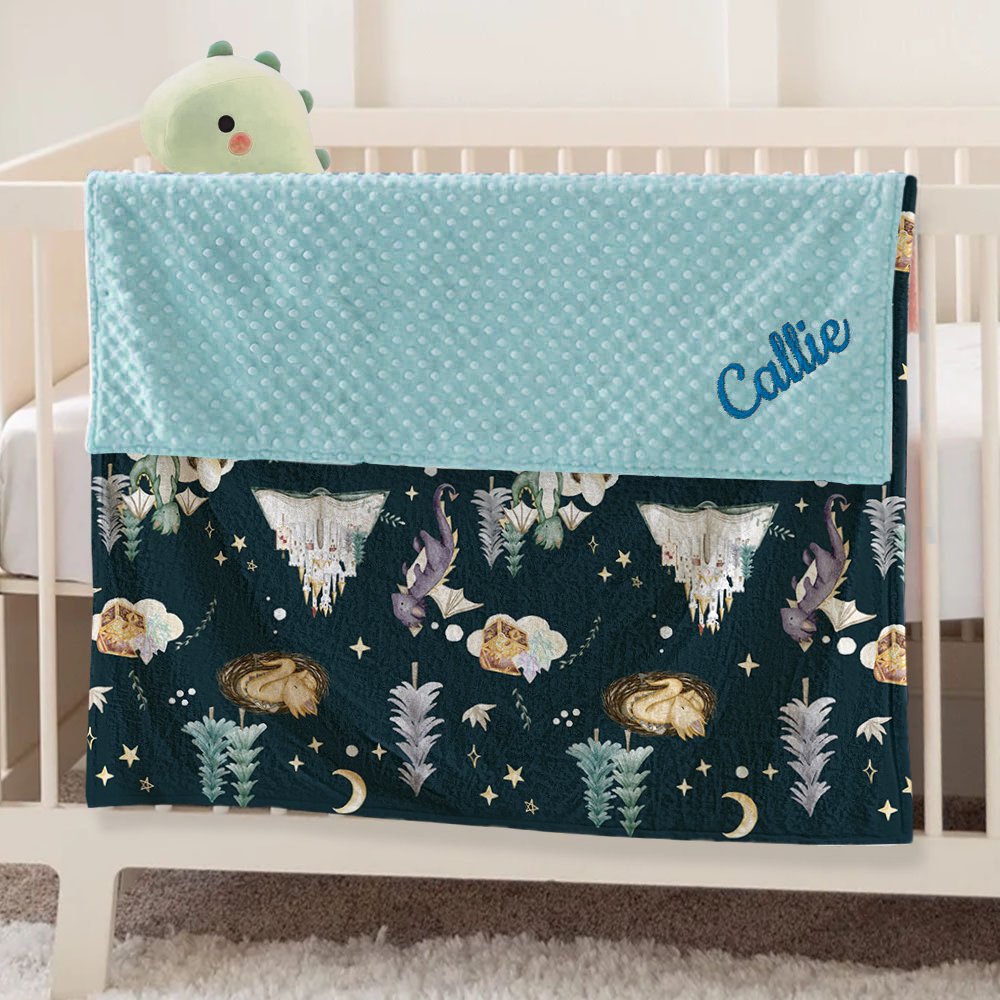 This blanket features multiple adorable cartoon dragons and a playful and childlike forest, which both babies and parents will love. In addition, you can Personalise it with your child's name and surname to express your blessings to your child.