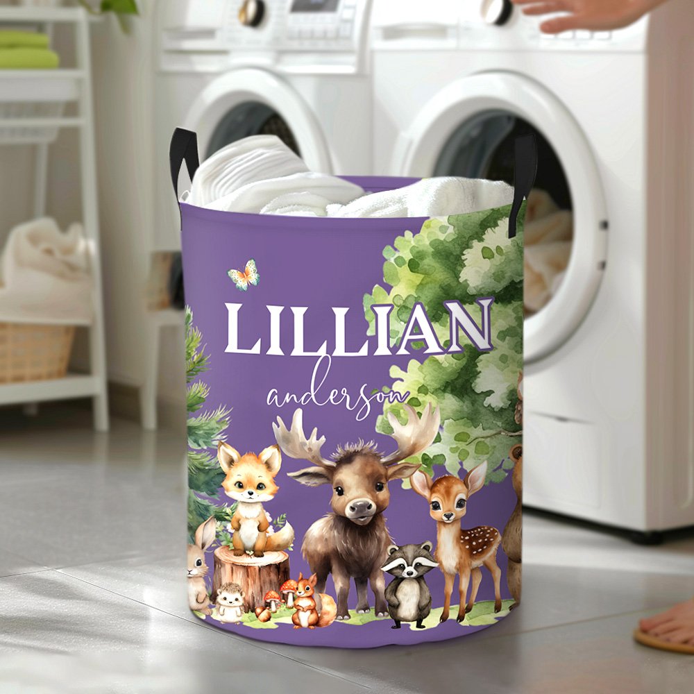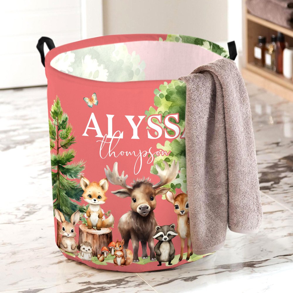 Perfect for animal lovers, this storage basket features a charming design that showcases adorable forest animals. Vivid illustrations of moose, foxes, squirrels, and owls fill the entire storage basket, making organization delightful. Plus, with the option to Personalise it with a first or last name, this basket becomes a treasured piece that reflects your unique style!