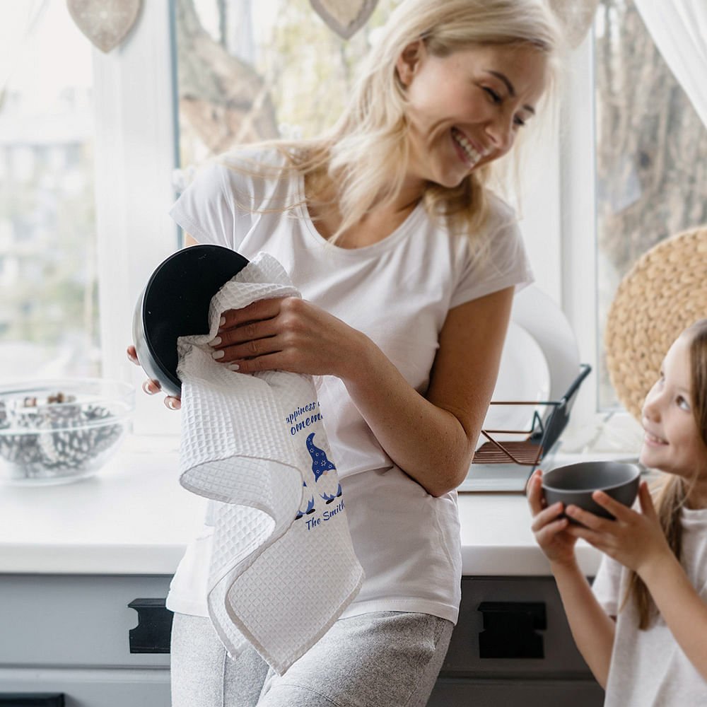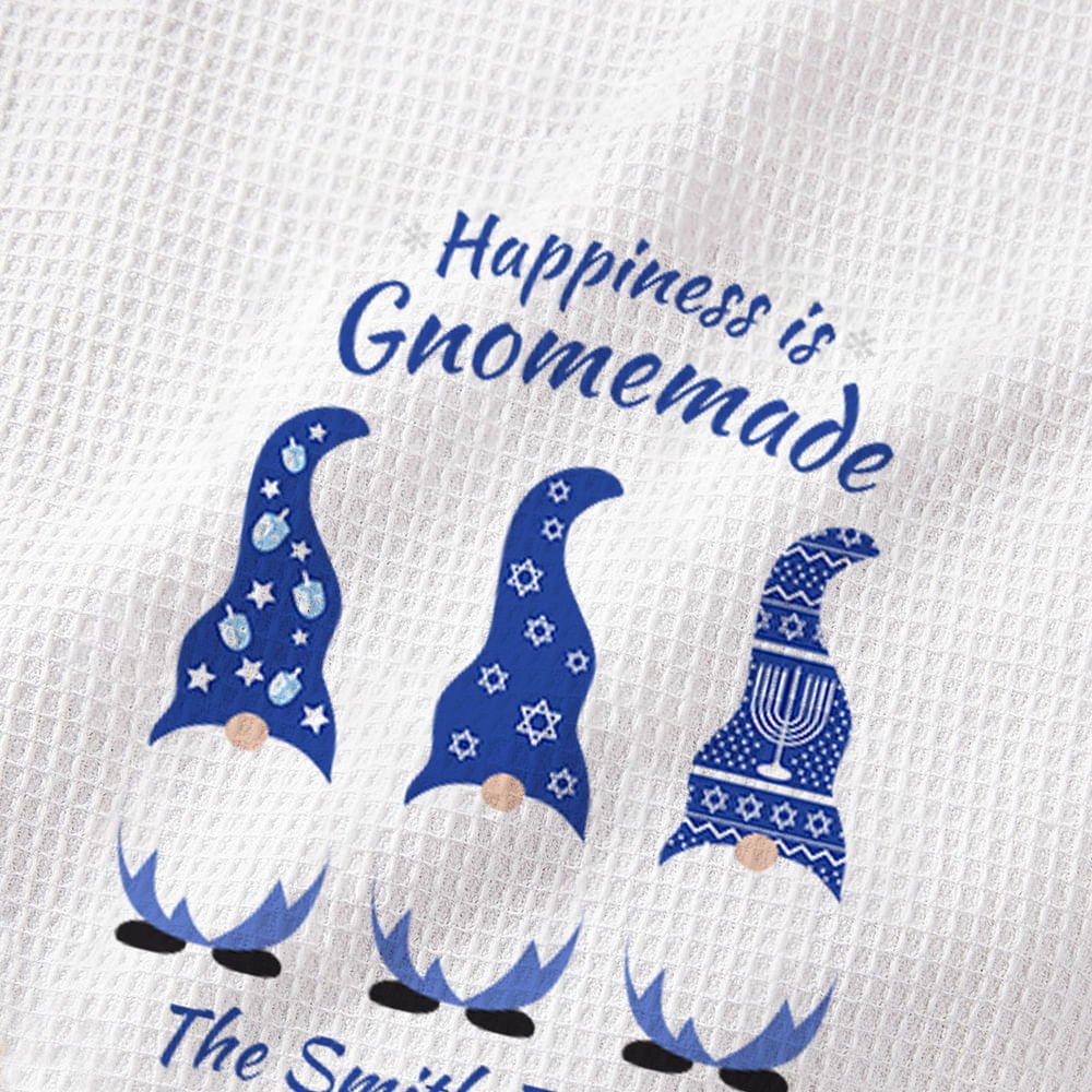 This tea towel uses cute gnome patterns to add decorative and unique features to the tea towel. Using two colours, blue and white, expresses respect for and celebration of Jewish cultural and religious traditions. The text on the tea towel can also be customized to make it even more distinctive.