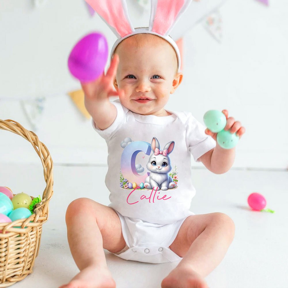 Available in a variety of bright colors, this garment makes a thoughtful gift for your little one by adoring Easter costumes and can be customized with your child's initials and name. Featuring a cute bunny, this playful design creates a fun, joyful atmosphere perfect for Easter events.