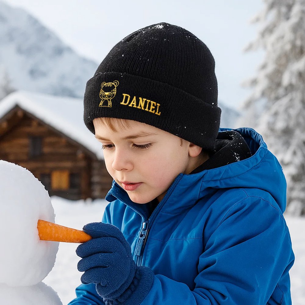 Personalized Cute Embroidered Animal Multicolour Knitted Beanie Hat with Name Warm Accessories Birthday Gift for Kids Adults