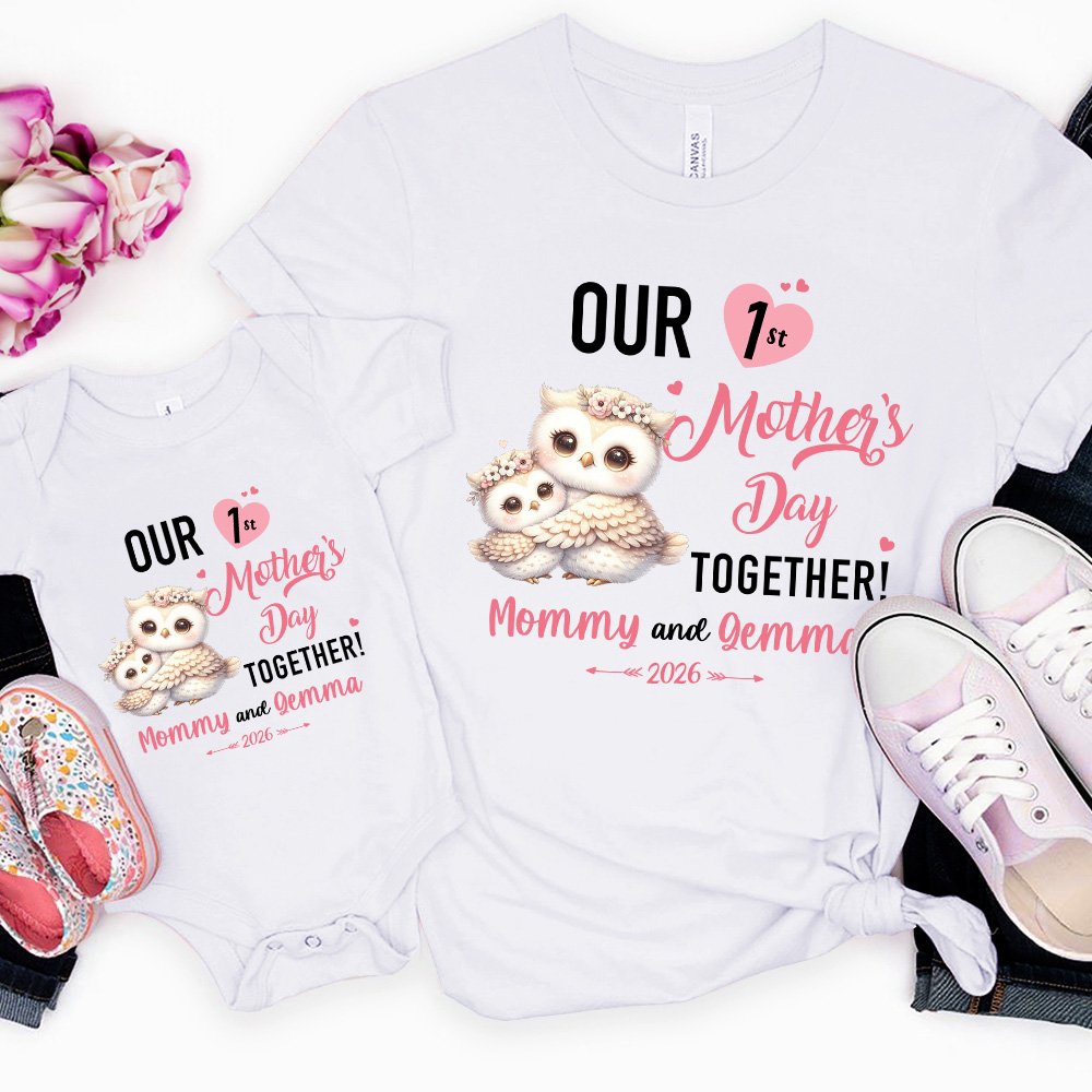 The front of this T-shirt and bodysuit is printed with the warm words "OUR 1st Mother's Day TOGETHER!", and is matched with lively and cute animal patterns, symbolizing the greatness of maternal love and the depth of family affection. We provide 20 kinds of animal patterns to enrich your choices. In addition, the clothes also support customized names and years to make them more exclusive.